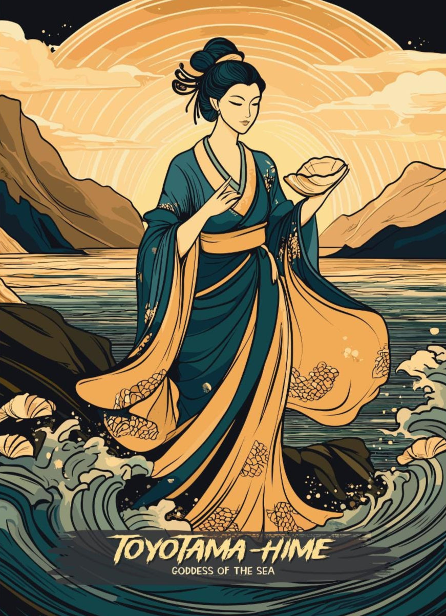 Notre affiche Toyotama-Hime – Œuvre d'art mythologique japonaise – s'intègre parfaitement à votre intérieur grâce à son design aérien. Parfaite pour les passionnés de mythologie et de mer, elle représente Toyotama-Hime, déesse de la mer et princesse dragon japonaise, émergeant des vagues dans une splendeur chatoyante. Que vous soyez un fervent adepte de son histoire ou un amateur d'art mystique, cette affiche mythologique Toyotama-Hime apportera une touche captivante à votre décoration.