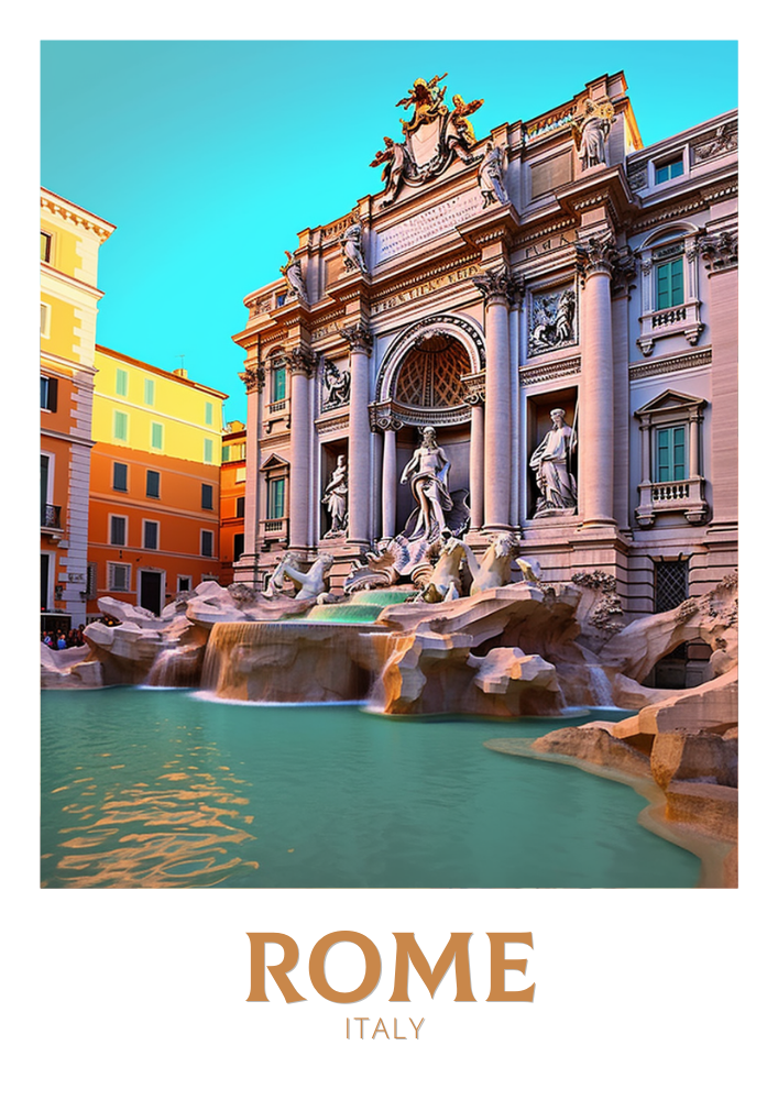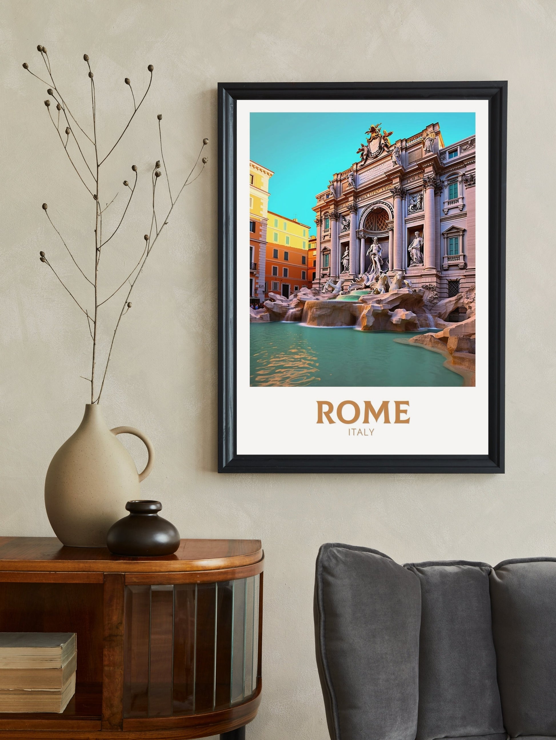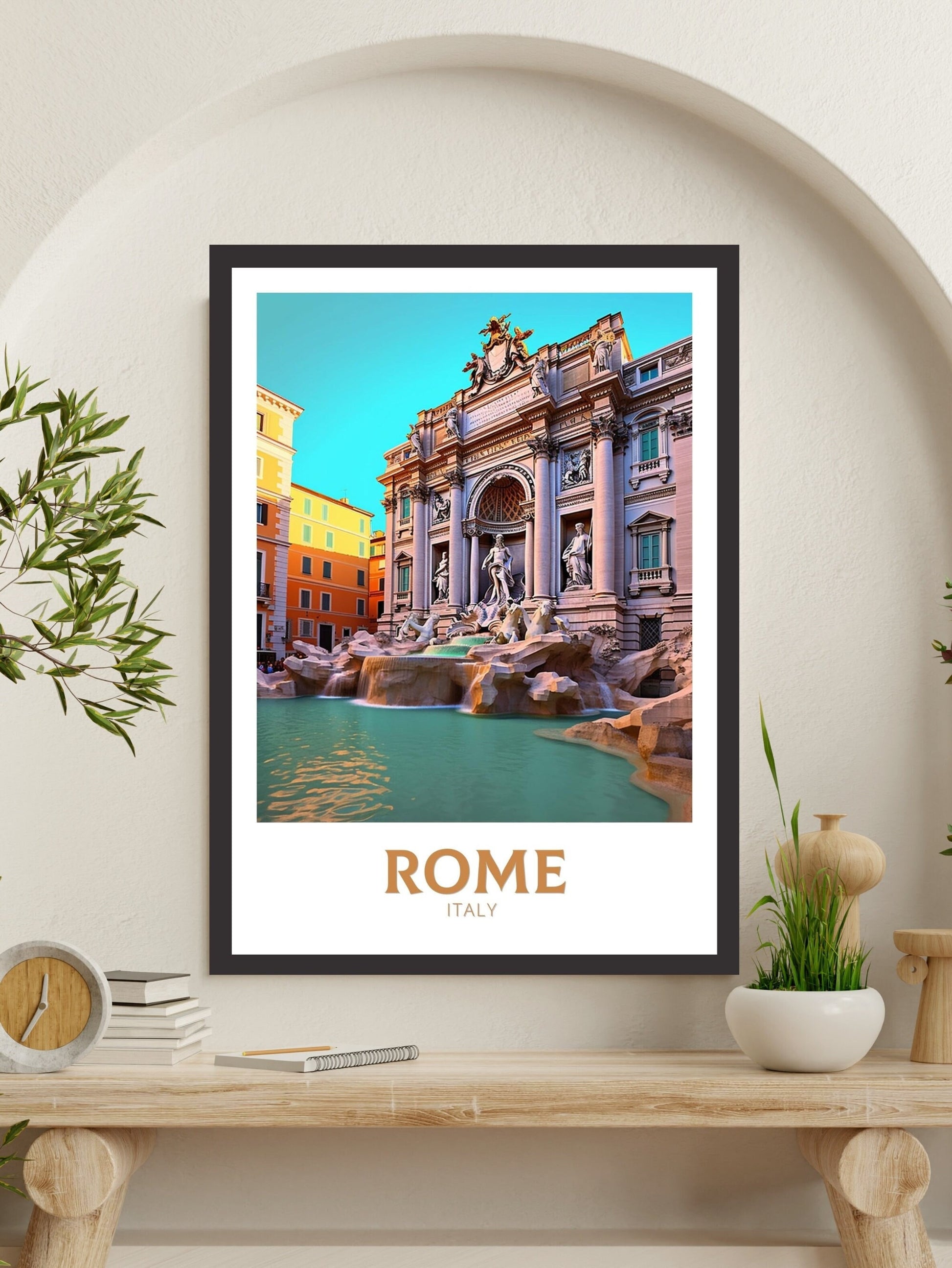 Ajoutez une touche romaine à votre intérieur avec cette élégante affiche de voyage représentant la fontaine de Trevi , qui capture la beauté et la grandeur de ce chef-d'œuvre baroque emblématique. Avec ses détails classiques et son gracieux jeu d'eau, cette œuvre d'art fait entrer l'esprit de la Ville Éternelle d'Italie dans votre intérieur.