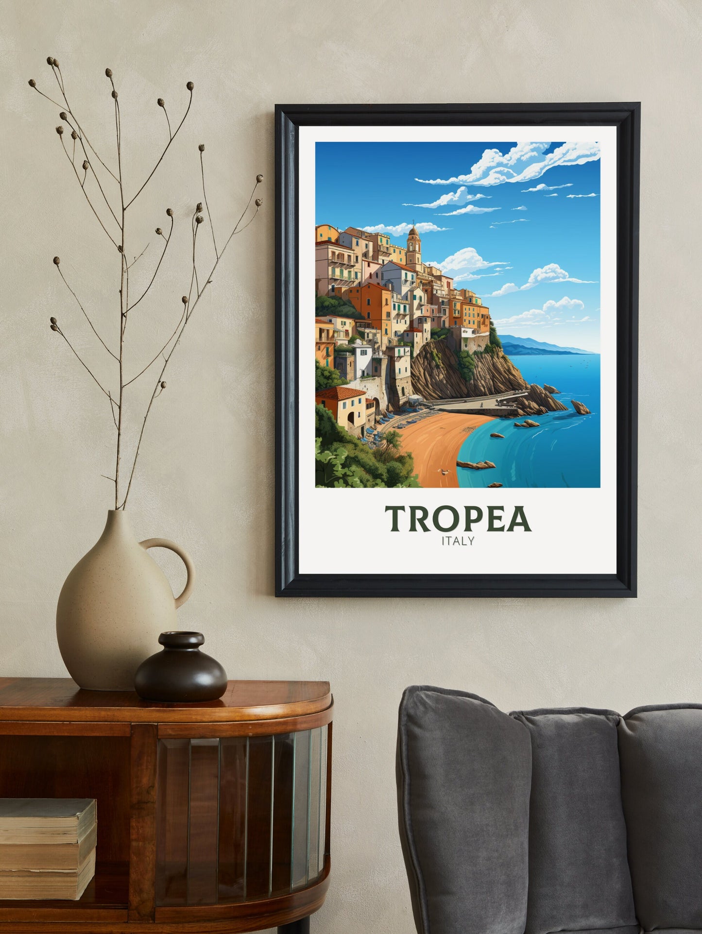 Imprimée sur un papier de qualité supérieure, aux détails nets et aux couleurs vives, l' affiche de voyage Tropea est un ajout élégant et intemporel à votre galerie murale ou à votre salon. Souvenir de voyage ou magnifique objet de décoration, cette œuvre d'art apporte l'esprit enchanteur de Tropea à vos murs.