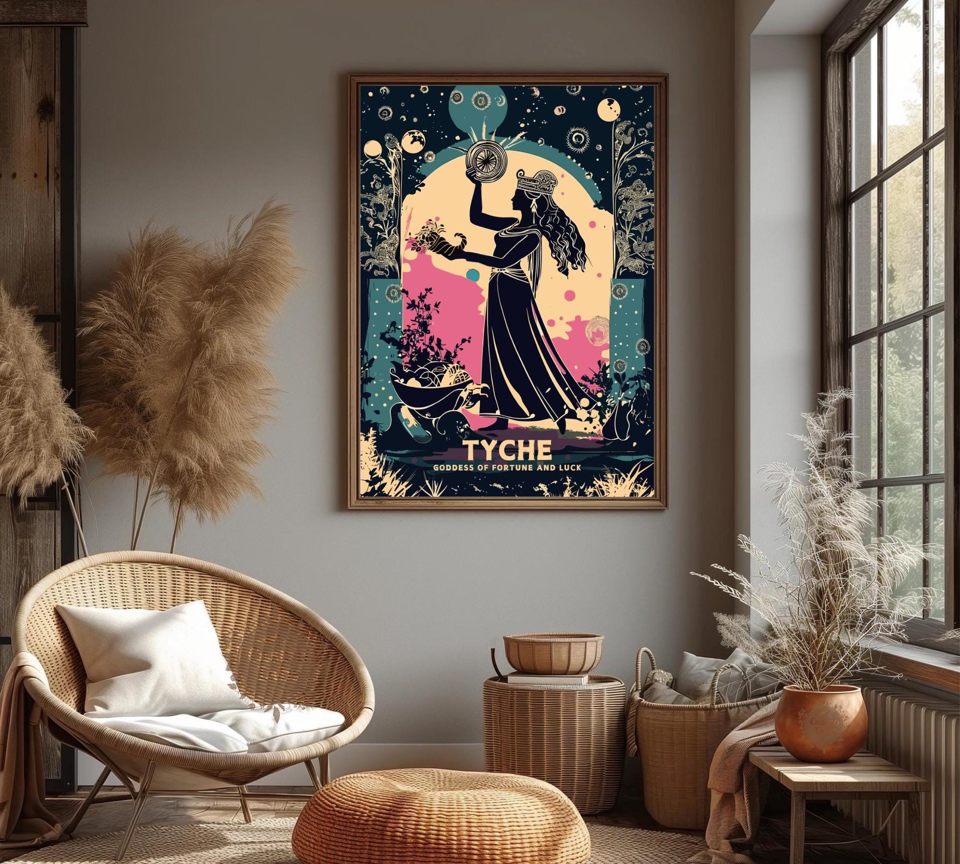 Notre affiche Tyché, déesse grecque de la fortune et de la chance, embellit votre intérieur avec son design original. Parfaite pour les passionnés de mythologie et les amateurs de chance, elle représente Tyché, la déesse grecque de la fortune, couronnée d'abondance et tenant sa corne d'abondance. Que vous soyez un amoureux de ses caprices ou de l'art mythique, cette affiche Tyché Fortune apportera une touche de charme à votre décoration.