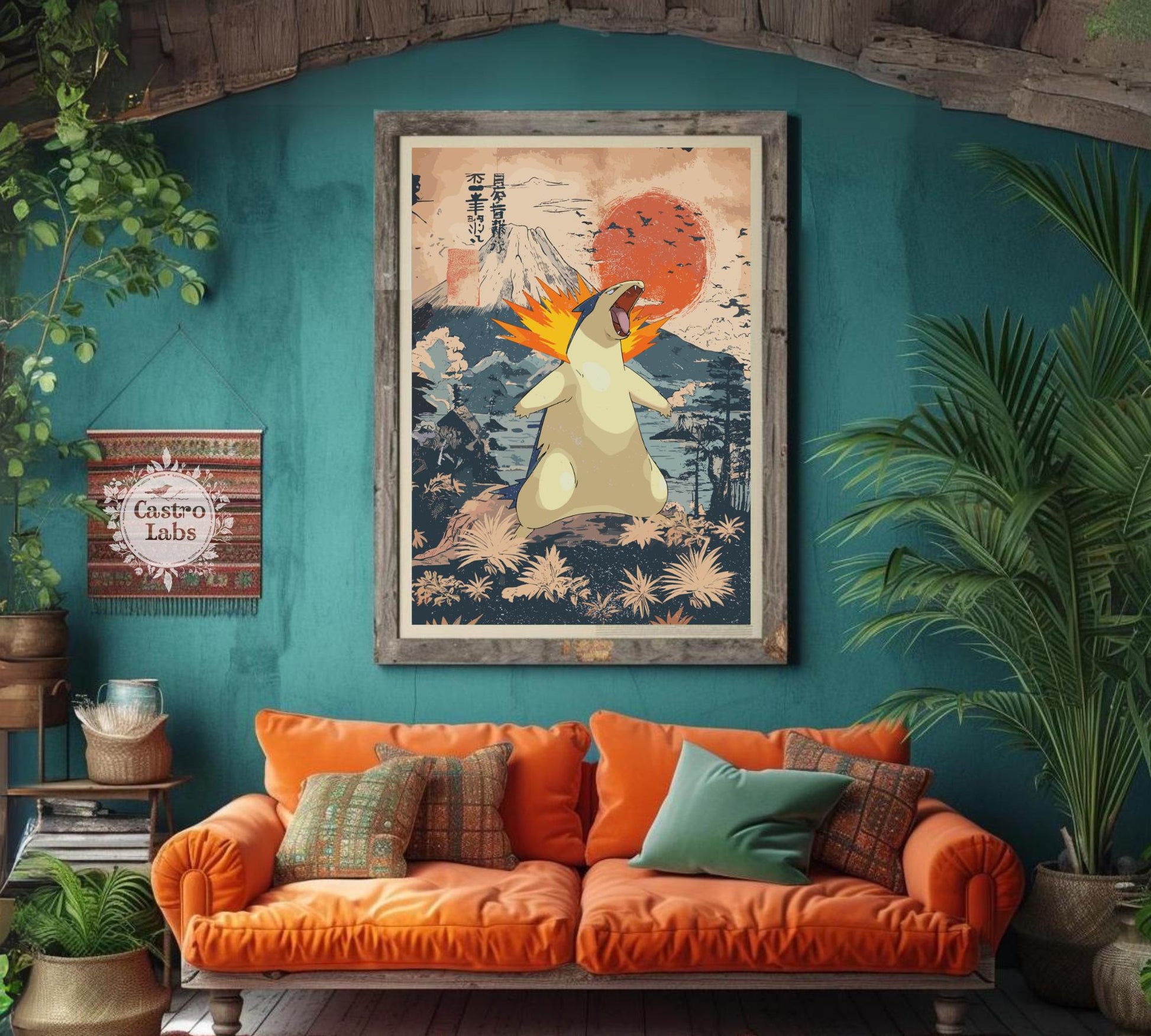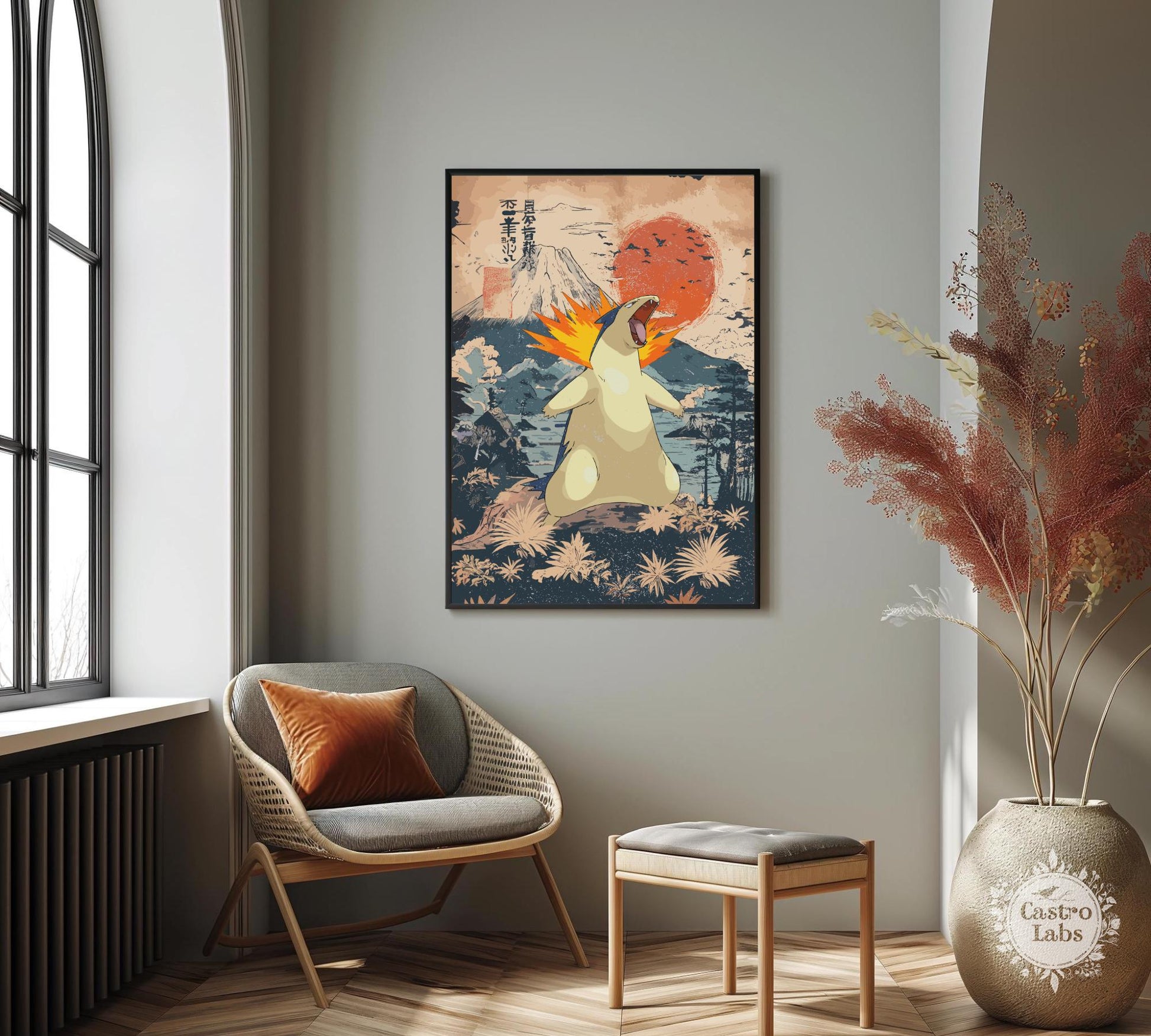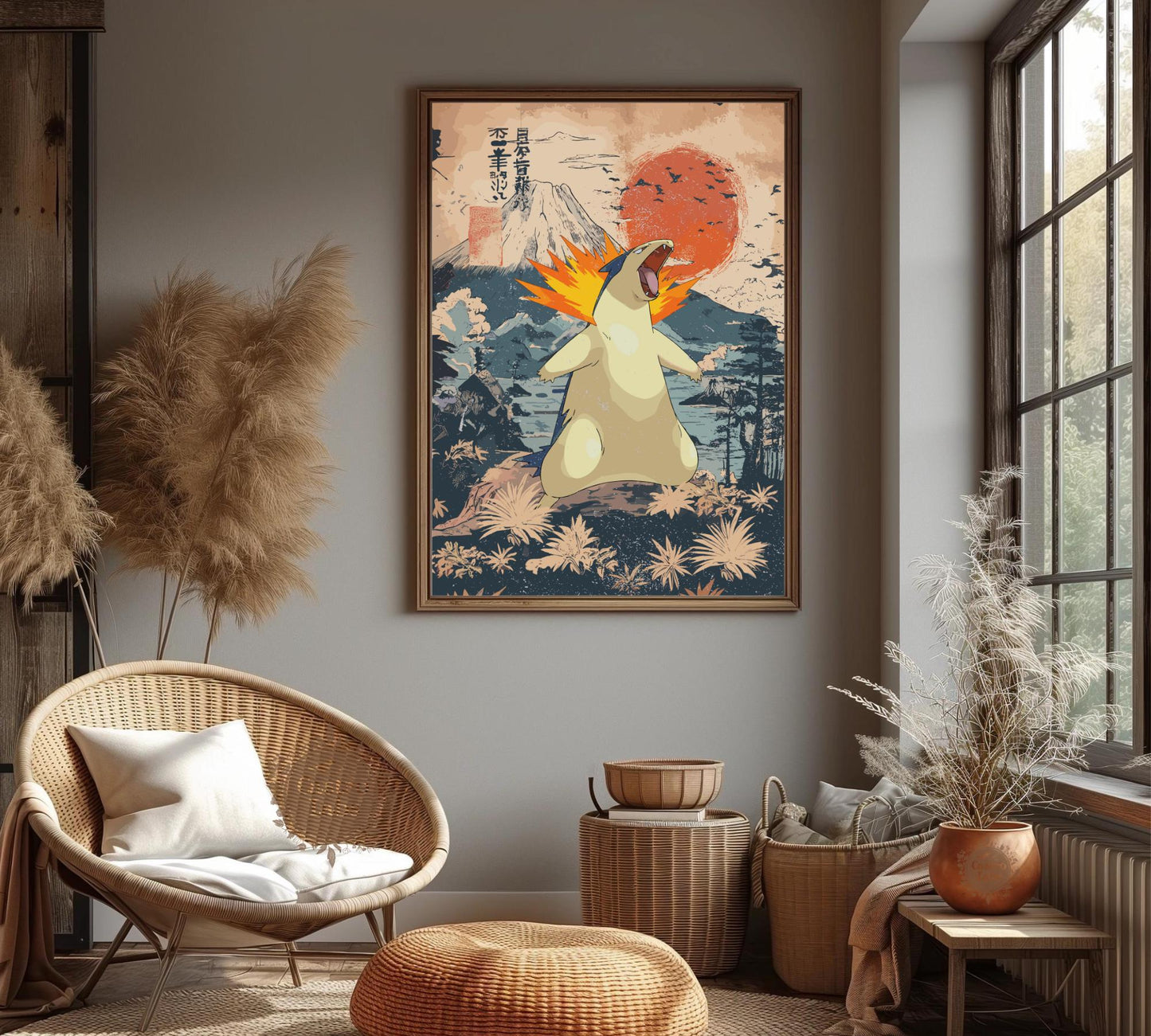 Affiche japonaise Typhlosion - Pokémon légendaires JCC et décoration murale animée