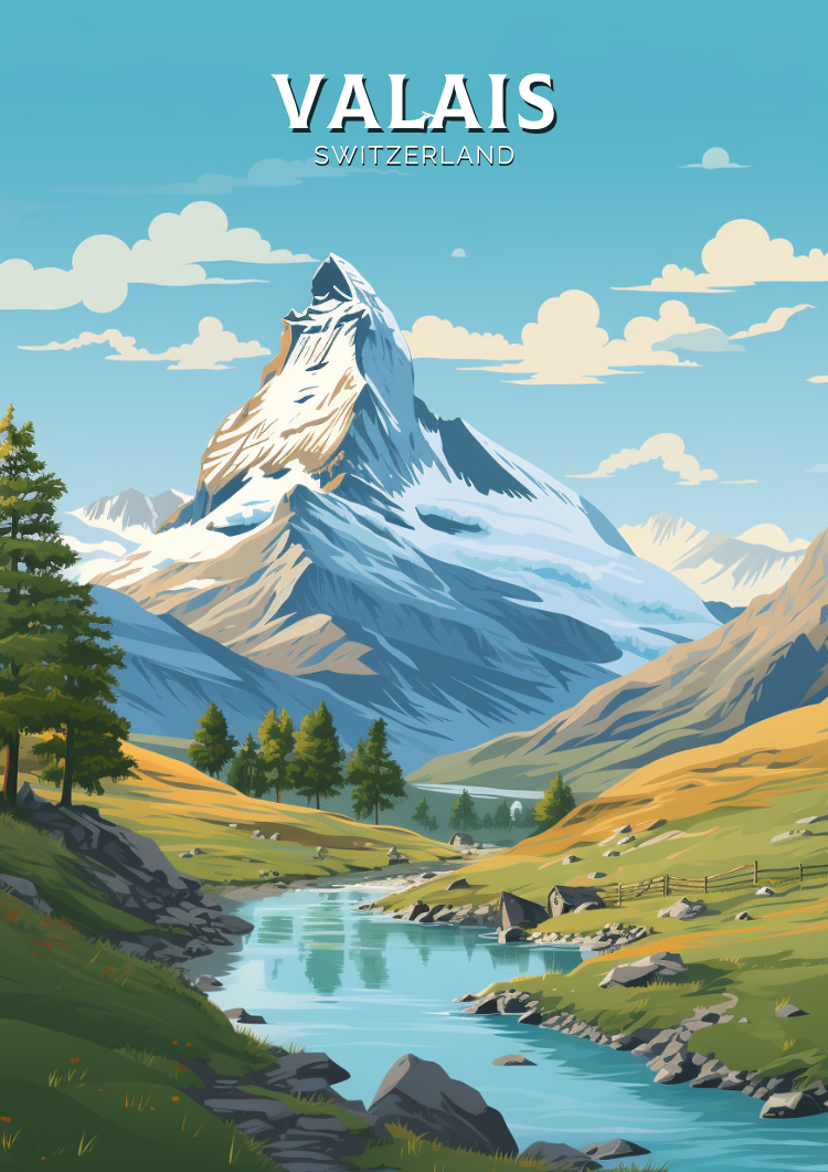 Affiche de voyage du Valais - Illustration suisse