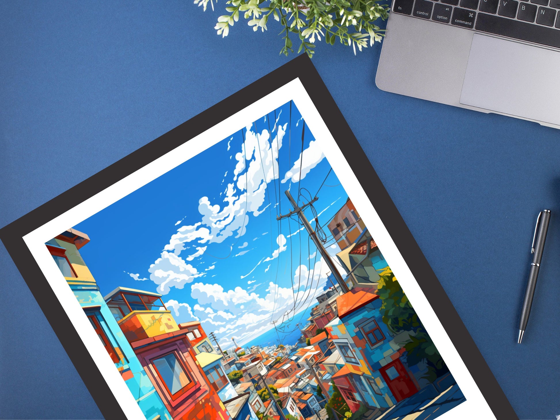 Cette œuvre mêle des rouges, des bleus et des jaunes audacieux à l'esprit bohème de Valparaíso, évoquant le charme d'un voyage vintage avec une touche de modernité. Imprimée sur un papier de qualité supérieure, elle offre un éclat durable et un fini lisse, ce qui en fait un cadeau idéal pour les aventuriers ou les collectionneurs d'art. Cette affiche « Ville Portuaire » apporte une touche de nostalgie bohème à tous vos murs.