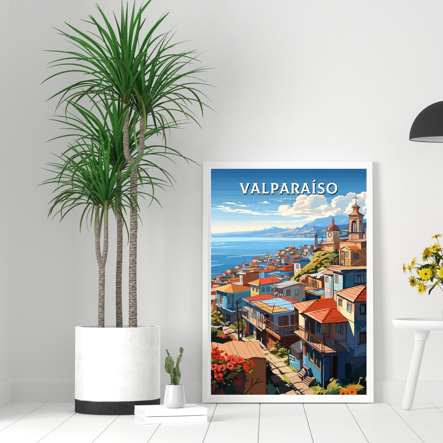 Notre affiche de voyage Valparaíso – Design rétro chilien plonge votre intérieur dans l'âme vibrante de Valparaíso, au Chili, grâce à son design nostalgique. Idéale pour les passionnés de voyages et d'art rétro, elle capture les collines colorées et le street art de la ville dans un style intemporel. Que vous ayez arpenté ses rues ou rêvé de son charme, cette affiche rétro Valparaíso sera un atout déco exceptionnel.