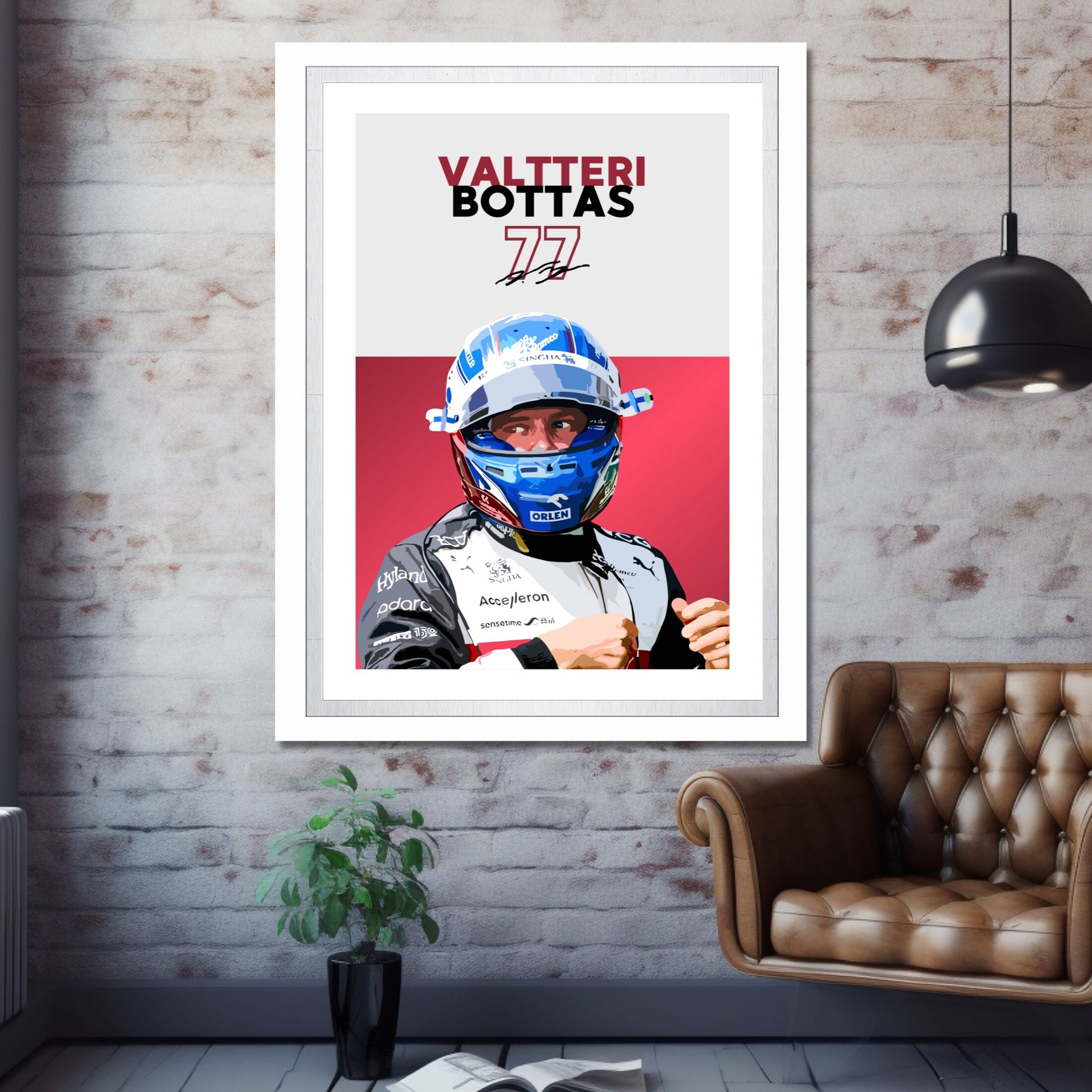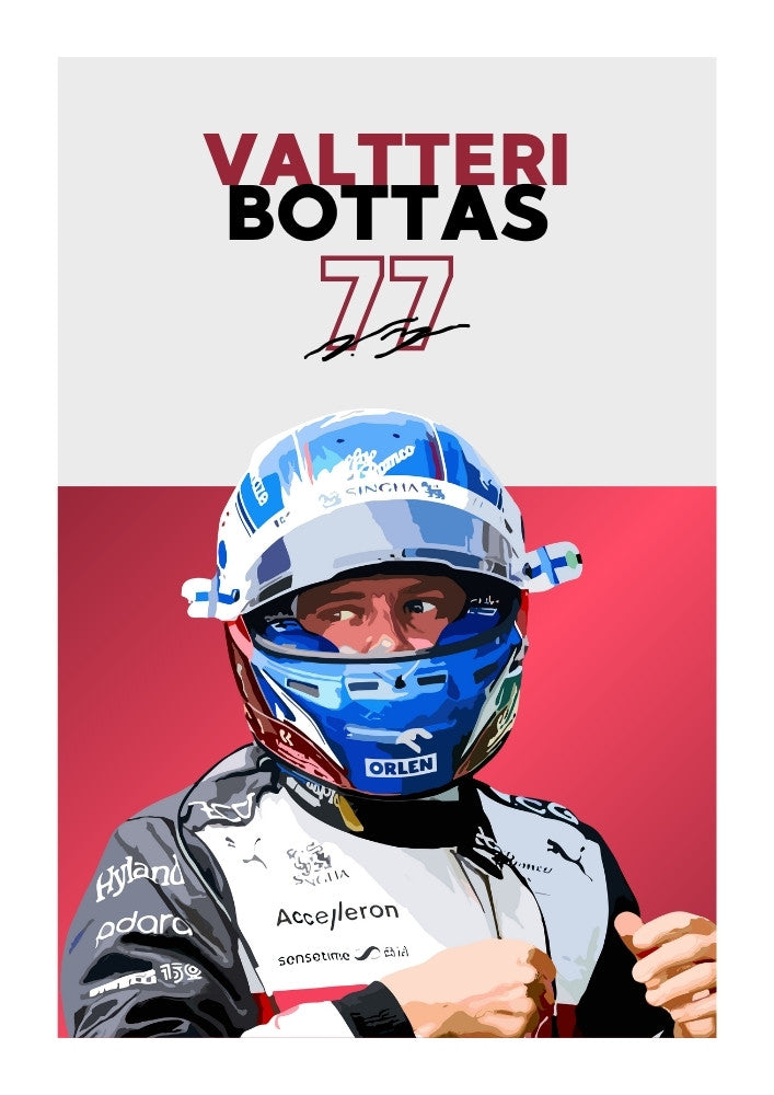 Affiche Alfa Romeo F1 Valtteri Bottas – Décoration murale du pilote finlandais