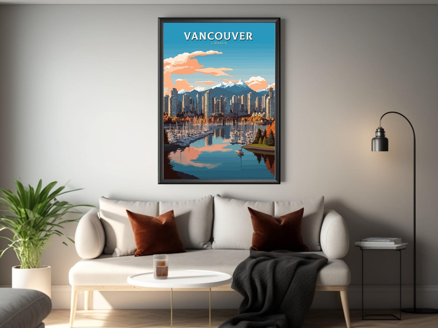 Capturez le magnifique paysage urbain de Vancouver avec notre affiche de voyage « Vancouver Skyline » - Canada . Cette affiche de haute qualité met en valeur l'horizon emblématique, alliant architecture moderne et beauté naturelle des montagnes et du front de mer environnants.