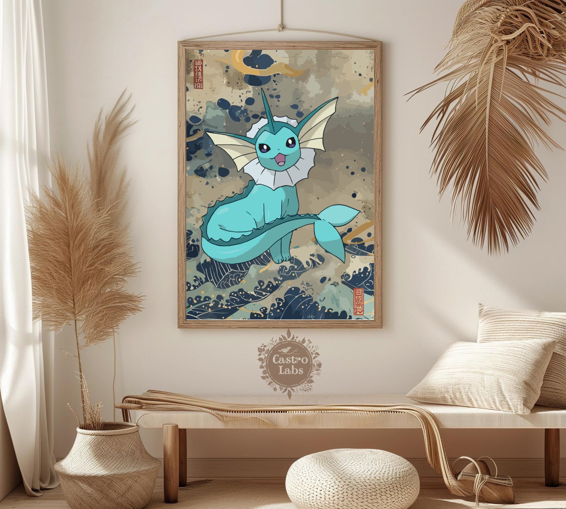 Affiche Pokémon Aquali - Décoration de salle de jeux Pokémon Art