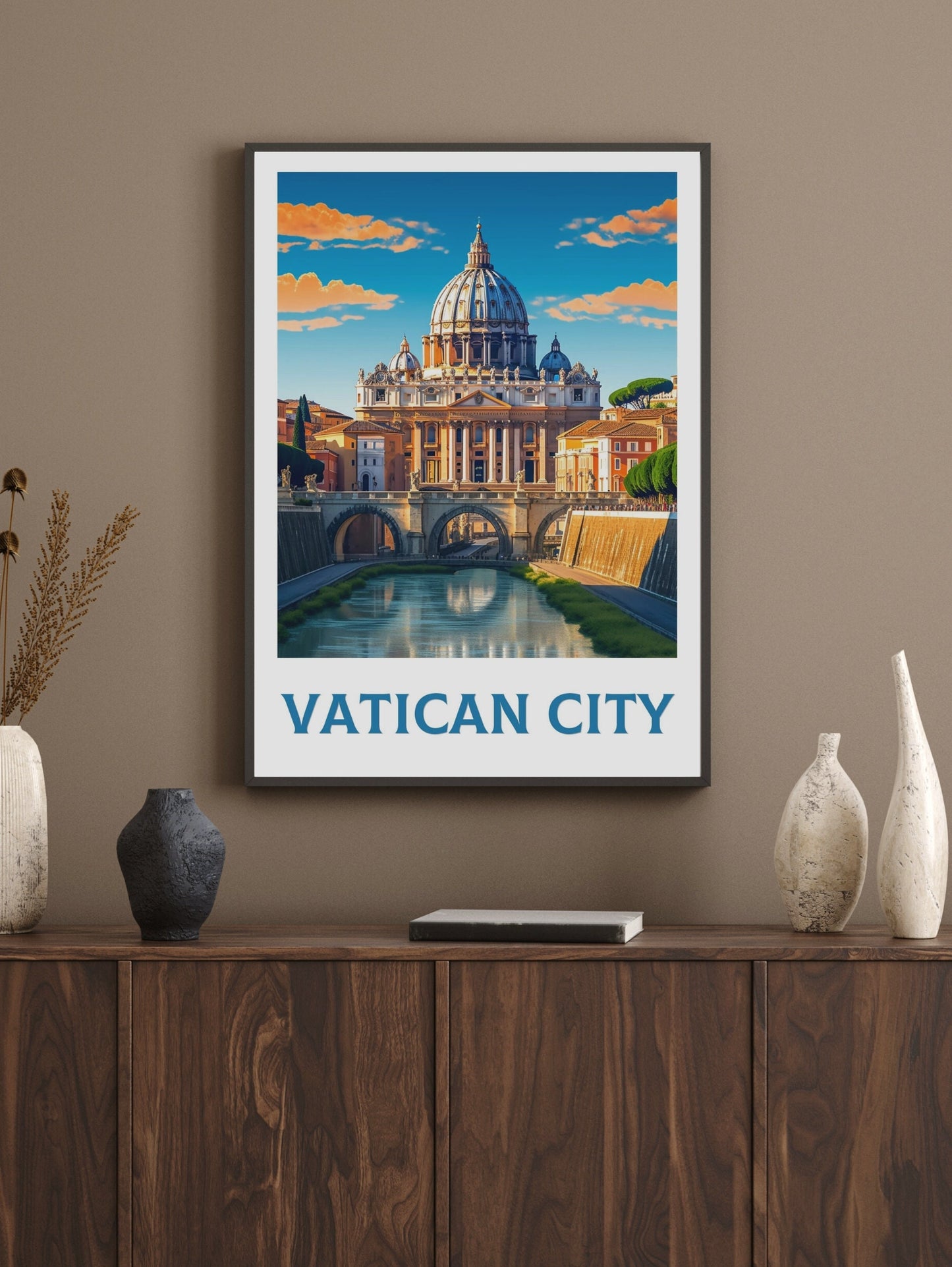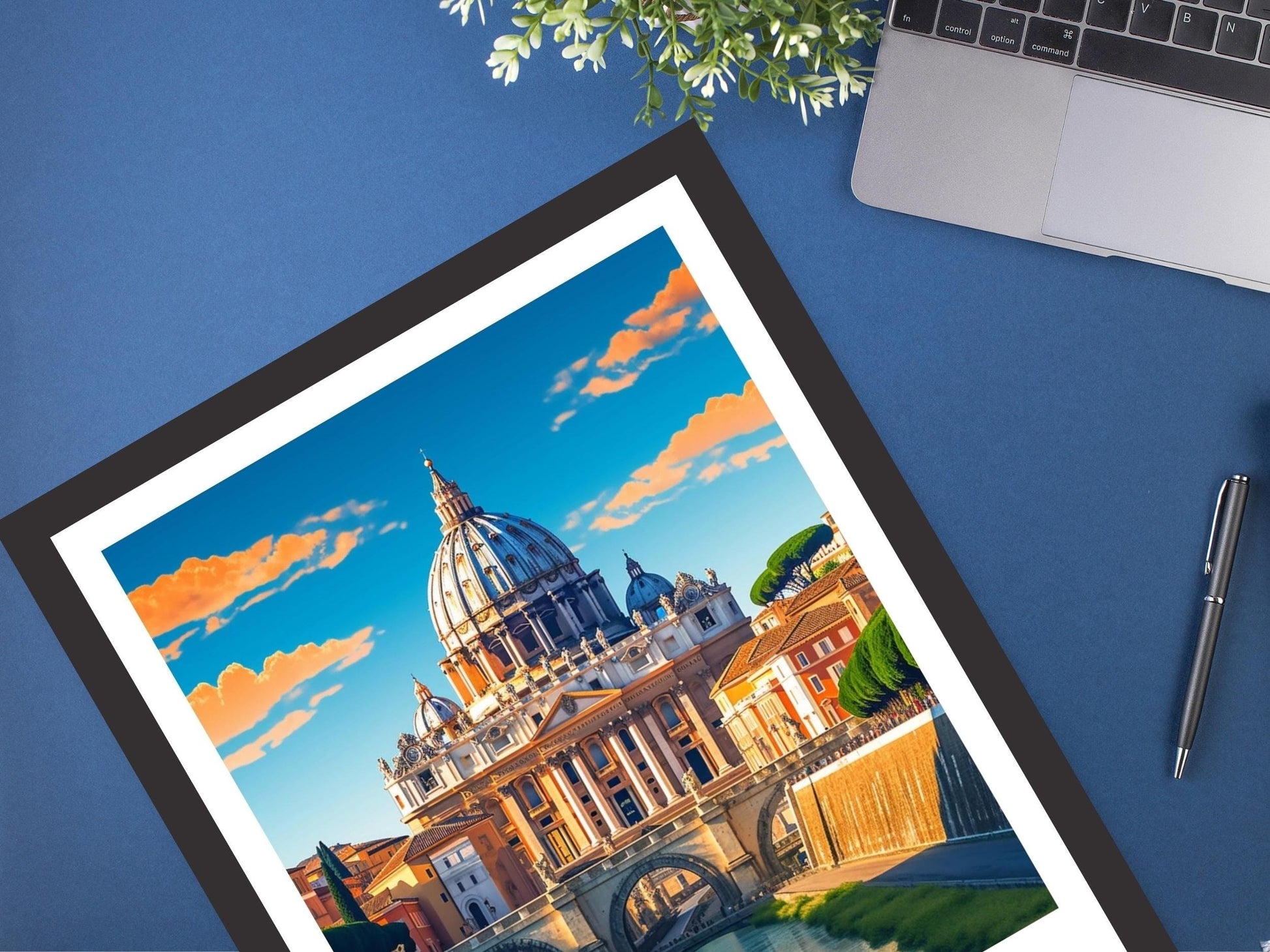 Imprimée sur un papier de qualité supérieure aux couleurs riches et aux détails précis, cette affiche de voyage Vatican est un ajout remarquable aux bureaux, aux coins lecture, aux murs de galeries ou aux lieux sacrés. Souvenir d'un voyage mémorable ou inspiration quotidienne, cette œuvre apporte la grandeur et la grâce du Vatican à votre intérieur.