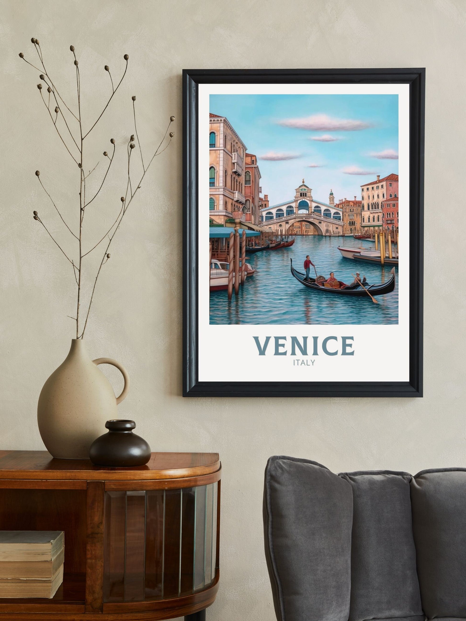Capturez la beauté envoûtante de Venise avec cette superbe affiche de voyage . Mettant en valeur les canaux emblématiques, les élégantes gondoles et l'architecture vénitienne historique, cette affiche italienne reflète parfaitement le charme romantique et intemporel de la ville. Idéale pour les amoureux de voyages, les passionnés d'art et tous ceux qui souhaitent ajouter une touche d'élégance italienne à leur décoration intérieure ou professionnelle.