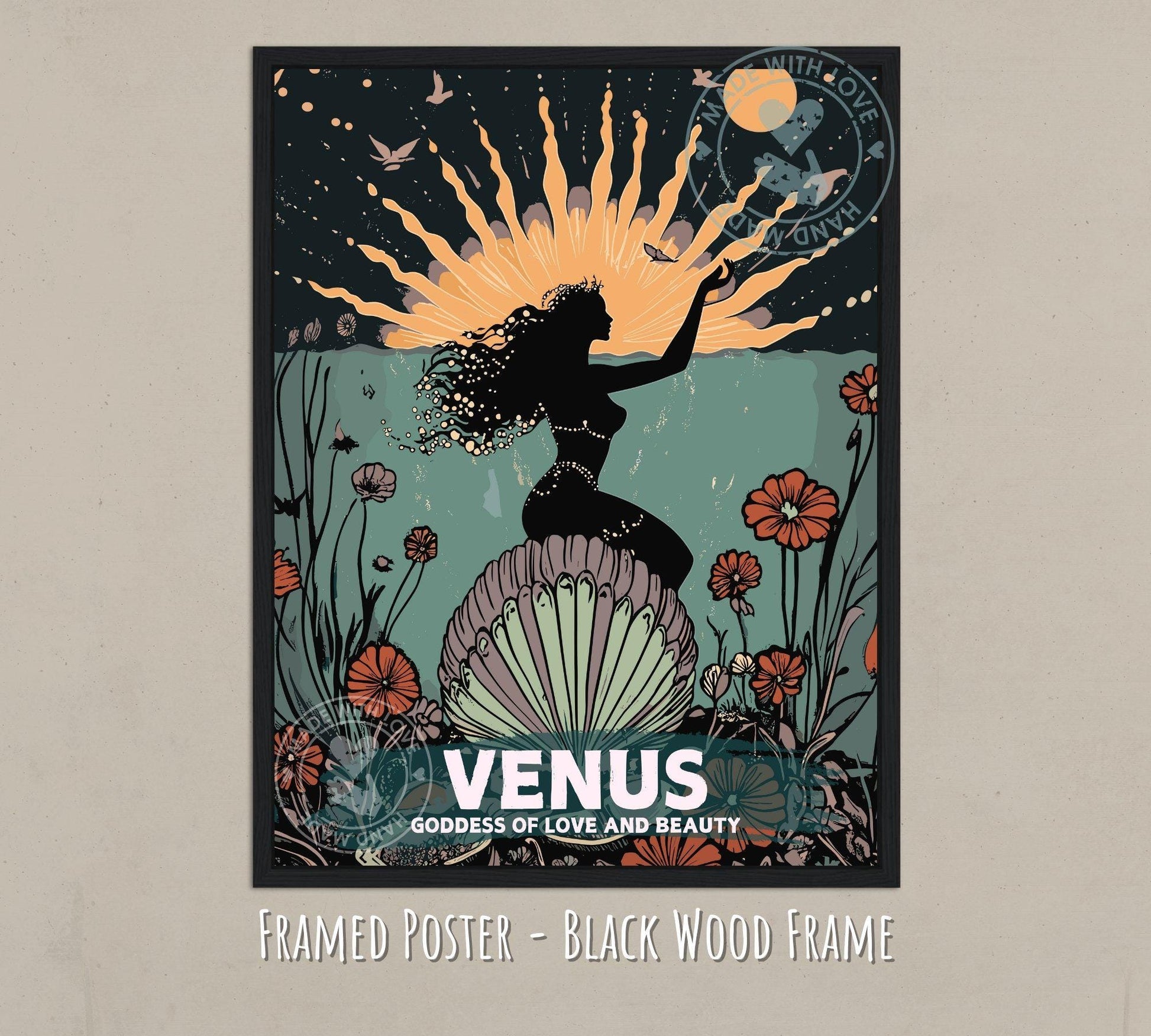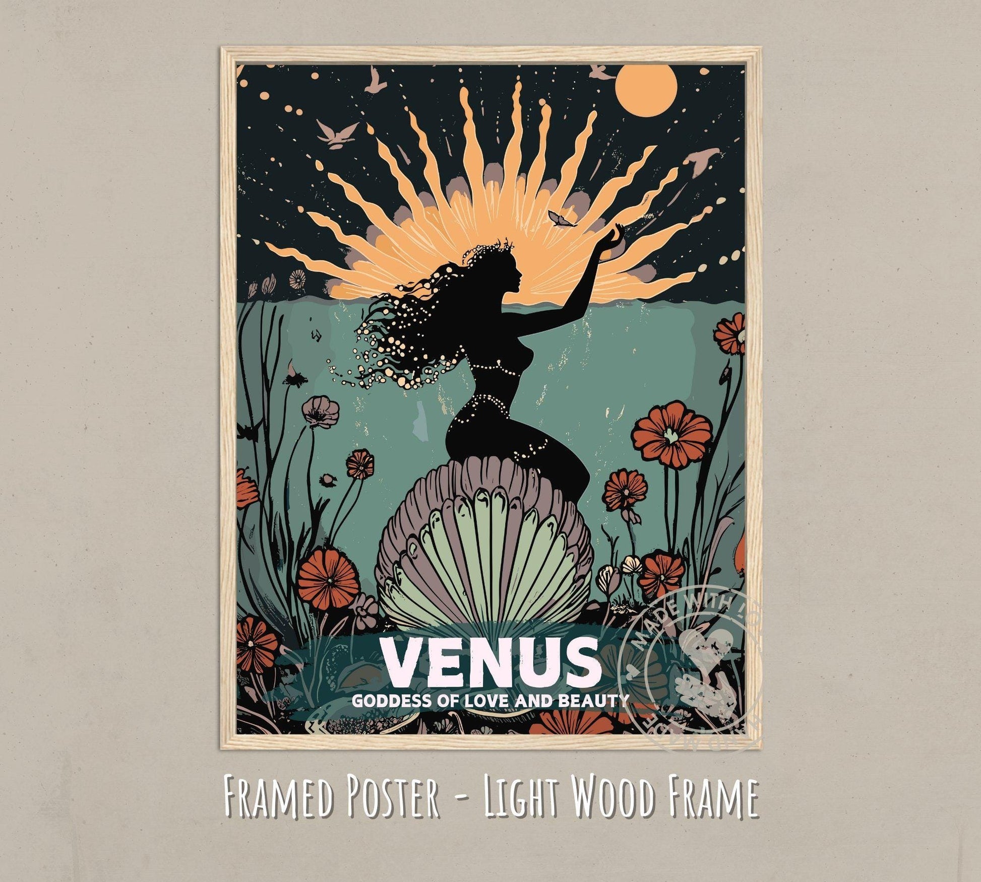 Qu'il s'agisse d'un objet de collection personnel ou d'un cadeau attentionné, cette affiche de la déesse Vénus - œuvre d'art de la mythologie romaine apporte une beauté intemporelle, de l'amour et une sophistication classique dans n'importe quelle maison.
