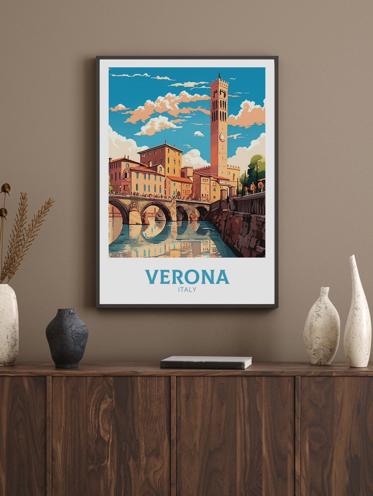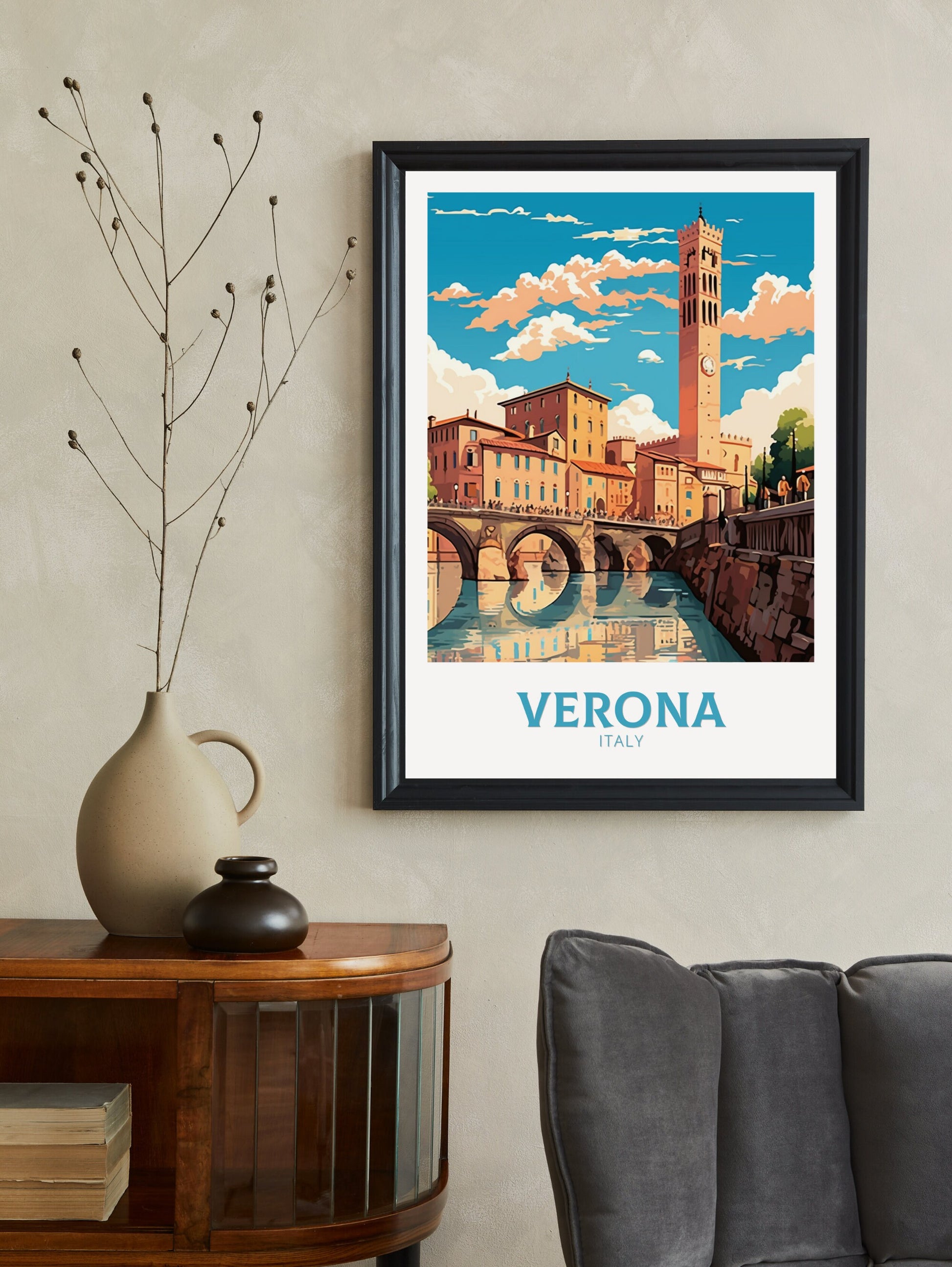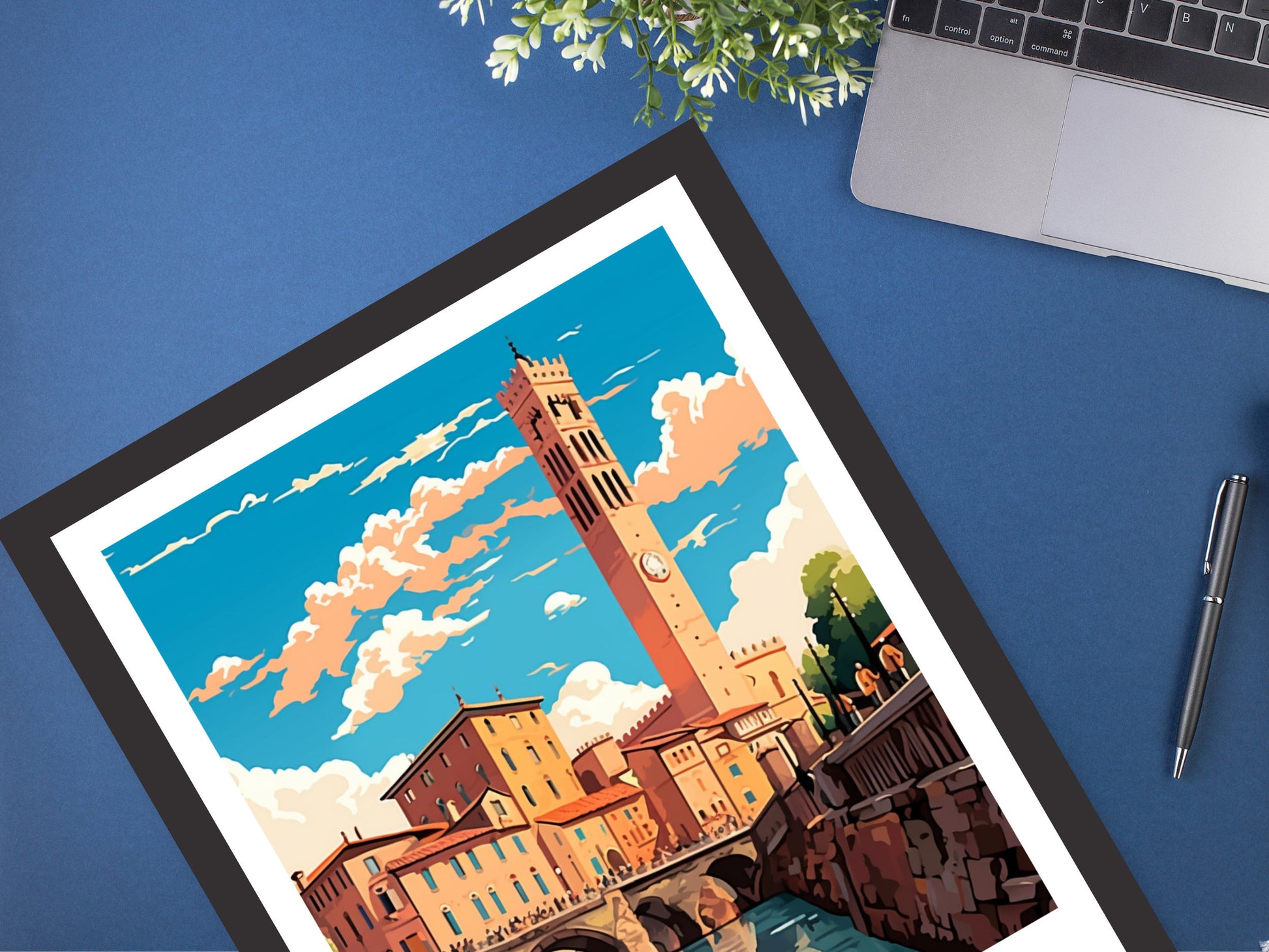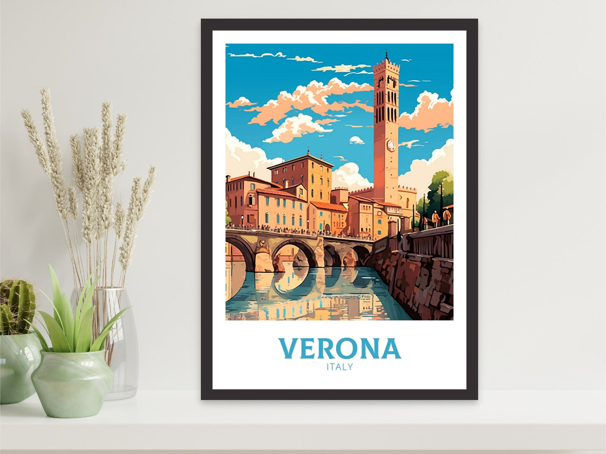 Imprimée sur un papier de haute qualité aux couleurs vibrantes et aux détails précis, l' affiche de voyage de Vérone est idéale pour décorer une galerie murale, un salon, un bureau ou une chambre. Que vous commémoriez un voyage mémorable ou que vous soyez simplement séduit par le charme de Vérone, cette œuvre d'art apporte romantisme et histoire italienne à votre intérieur.