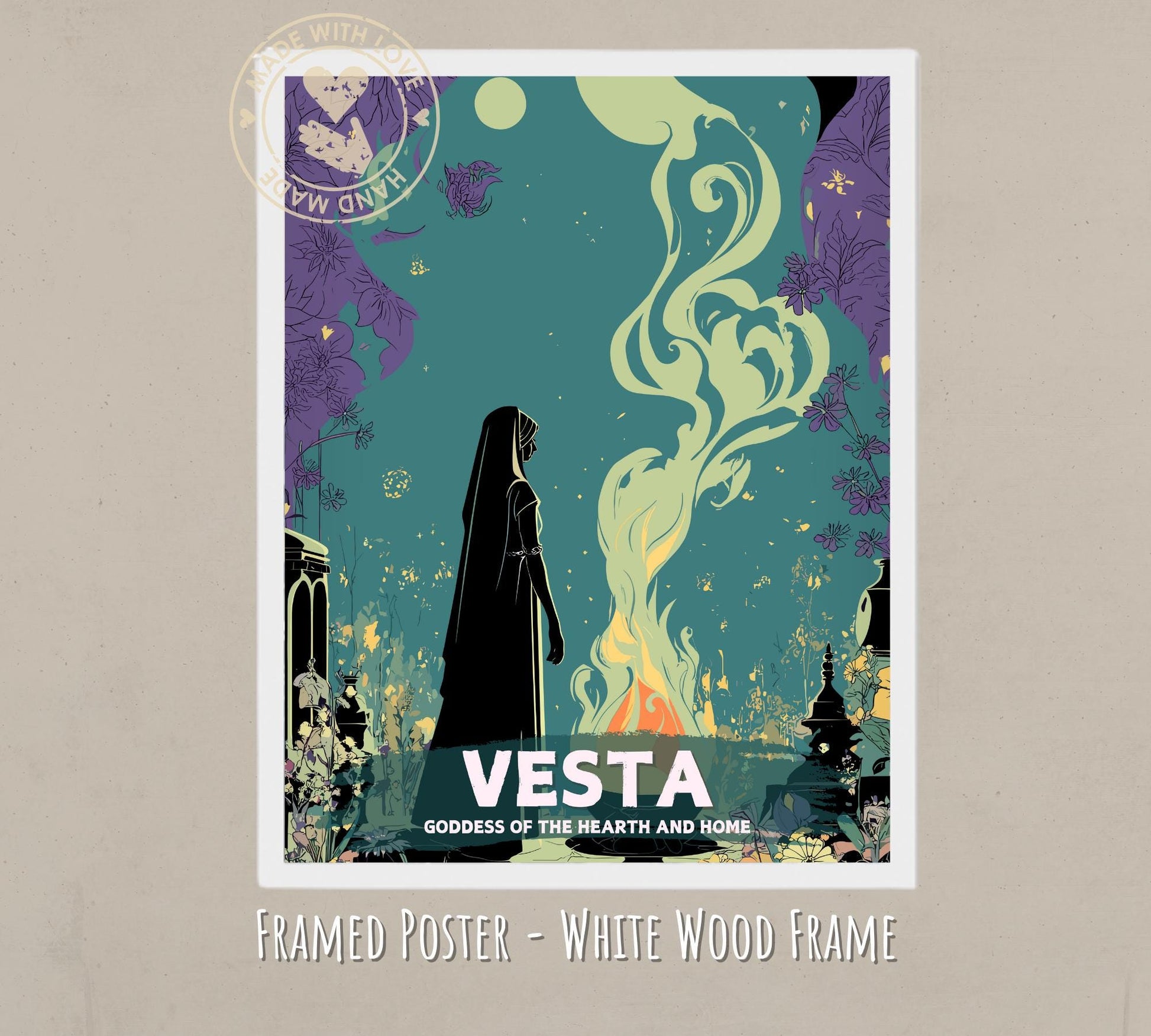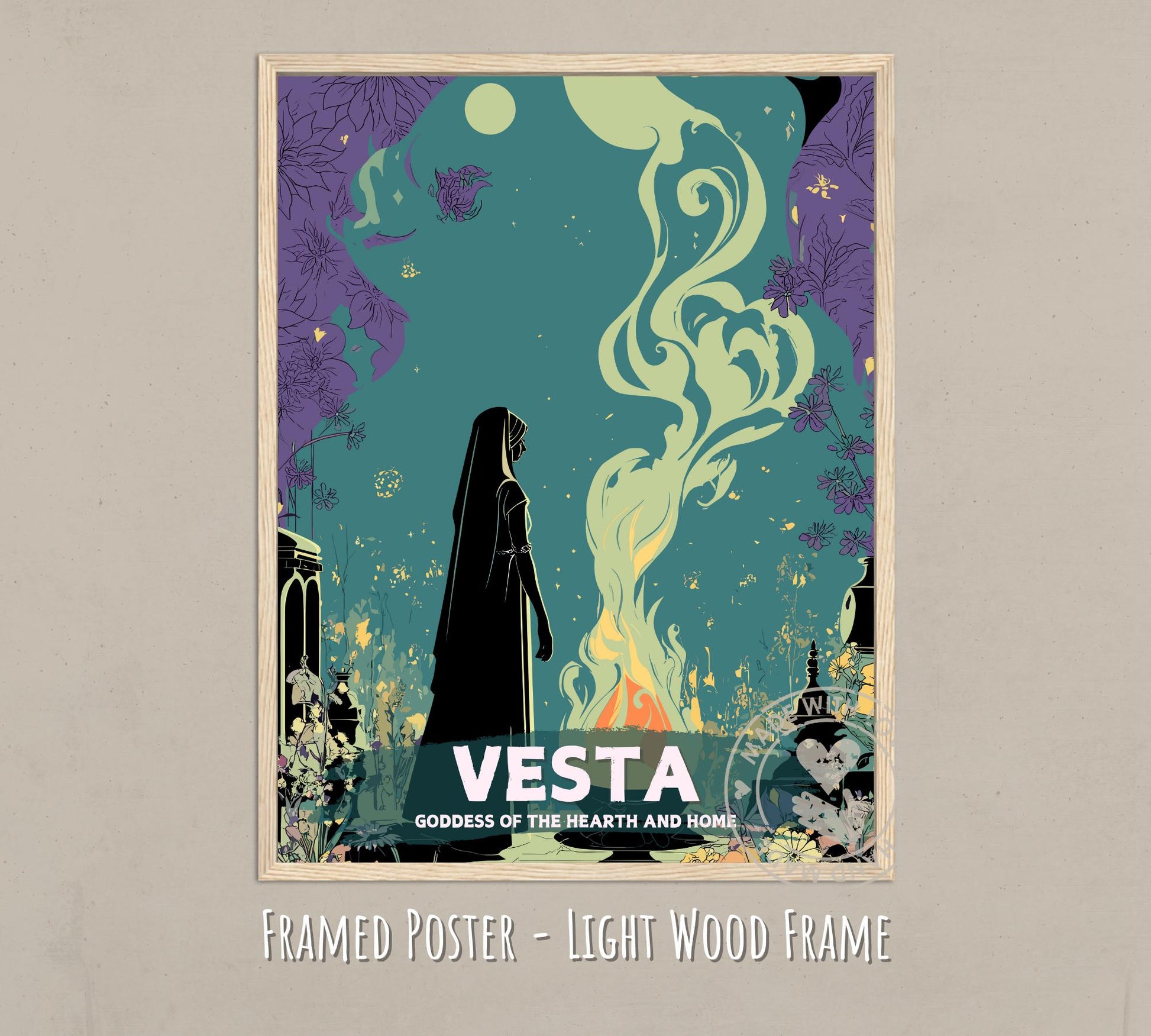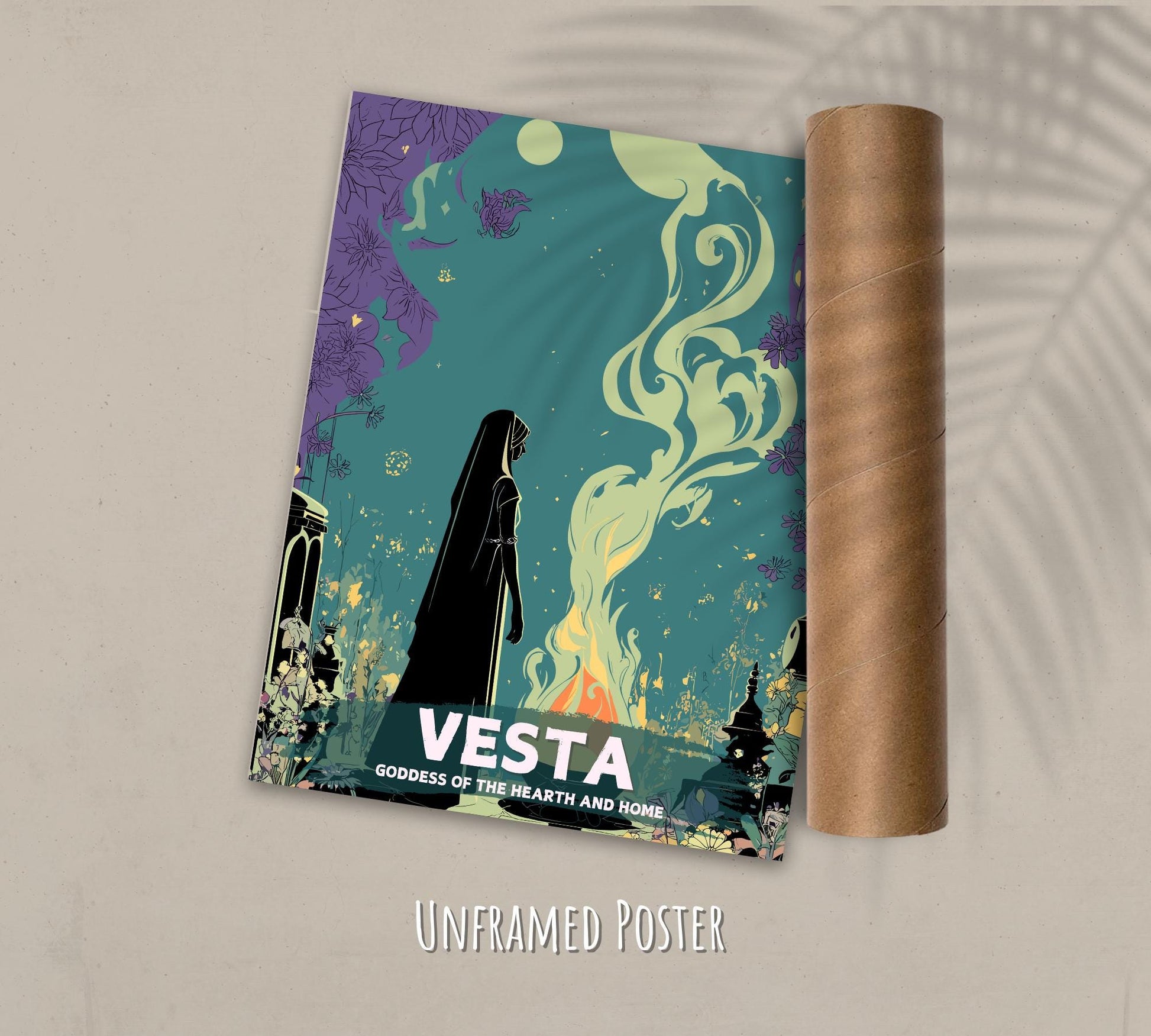 Qu'il s'agisse d'un objet de collection personnel ou d'un cadeau significatif, cette affiche de la déesse Vesta - œuvre d'art de la mythologie romaine apporte une élégance intemporelle, un symbolisme et une richesse culturelle dans n'importe quelle maison.