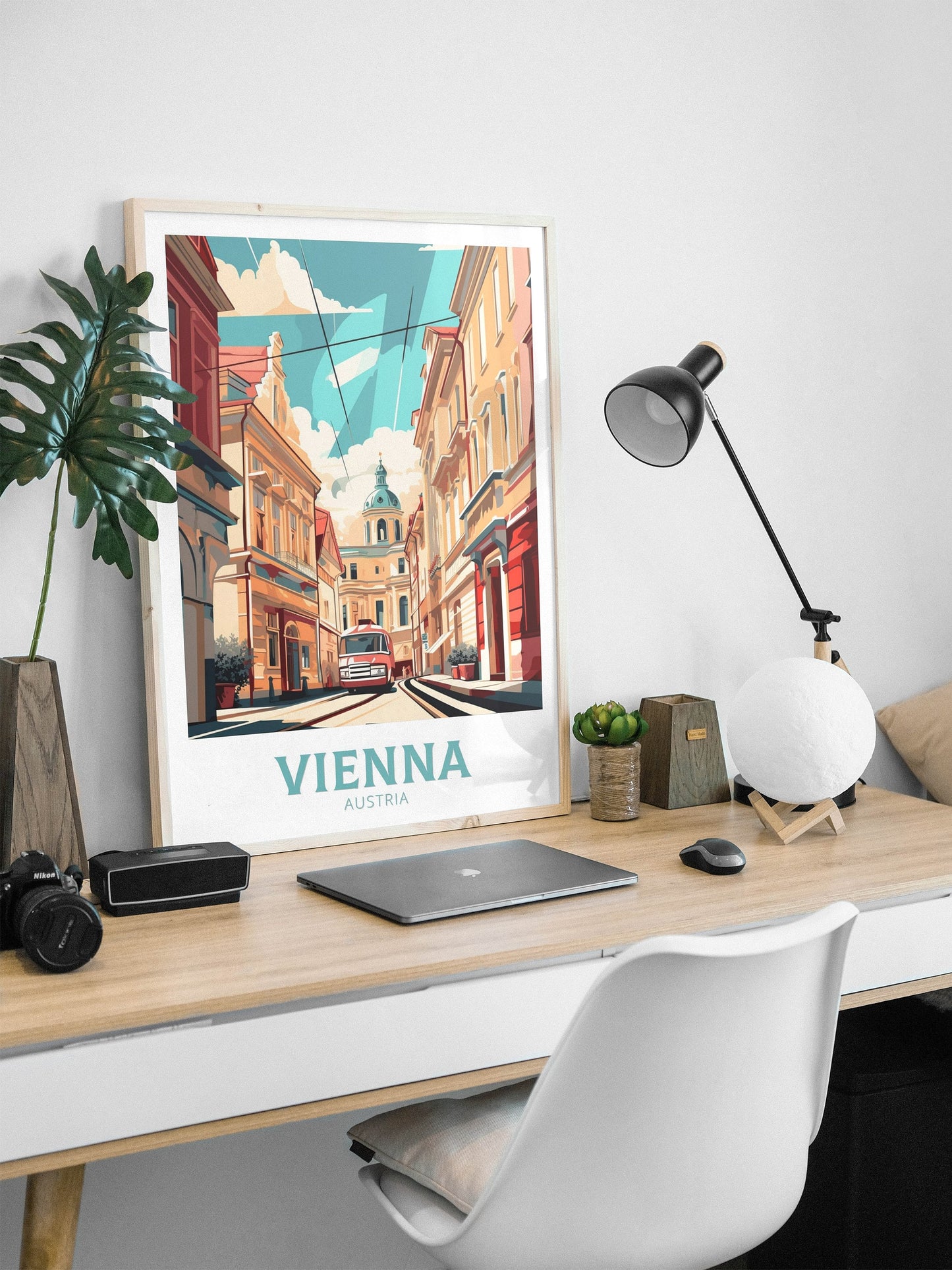 Imprimée sur un papier de qualité supérieure aux couleurs éclatantes et aux détails précis, l' affiche de voyage de Vienne est idéale pour décorer un salon, un bureau ou une galerie murale. Que ce soit pour commémorer un voyage mémorable ou pour apporter une touche de sophistication européenne classique à votre intérieur, cette affiche incarne l'esprit viennois.