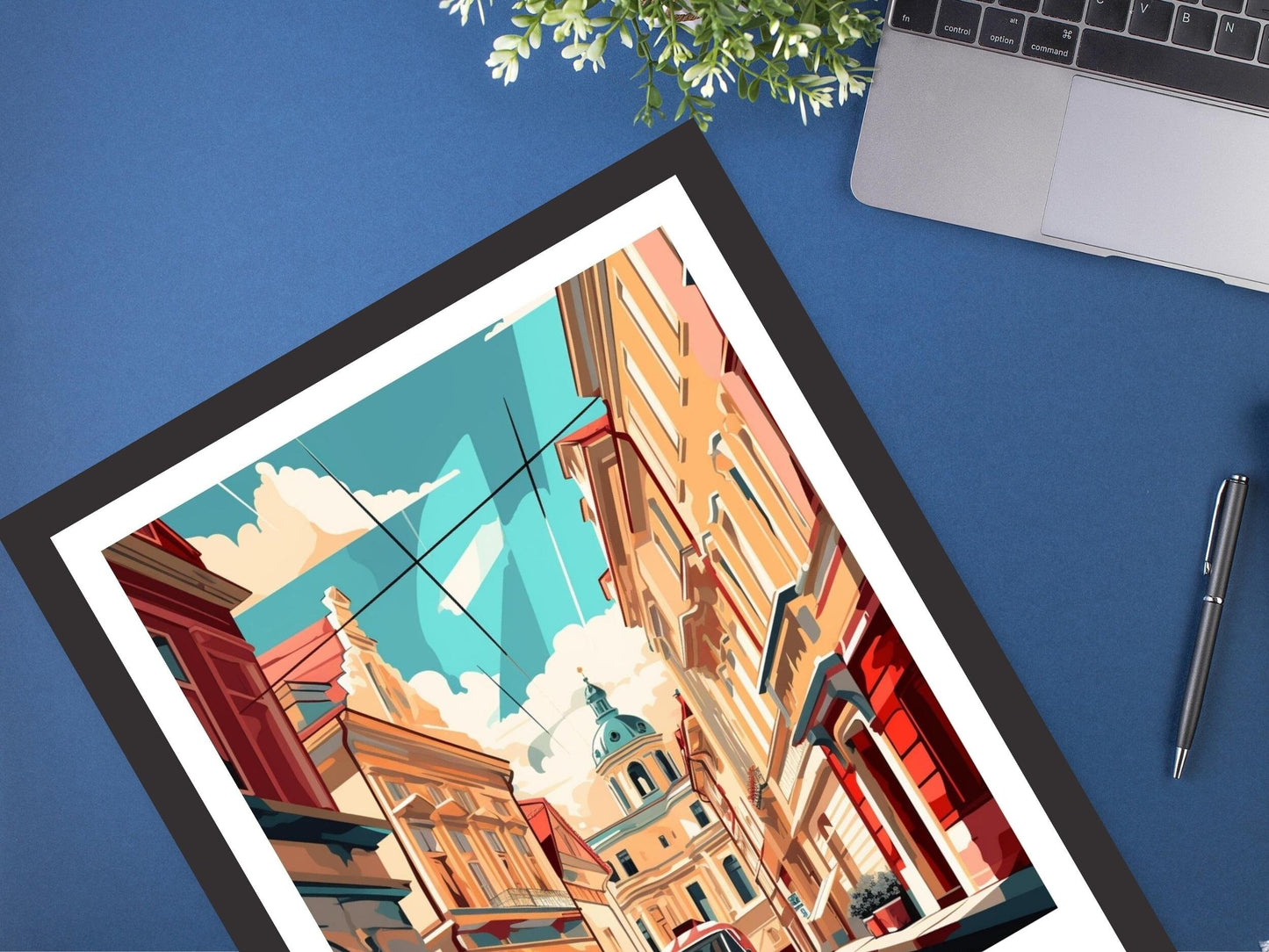 Célébrez la richesse culturelle et l'élégance impériale de la capitale autrichienne avec cette captivante affiche de voyage de Vienne . Mettant en vedette des monuments emblématiques comme le château de Schönbrunn, la cathédrale Saint-Étienne et la majestueuse Ringstrasse, cette œuvre d'art autrichienne met magnifiquement en valeur le charme historique et le patrimoine artistique de Vienne. Idéale pour les passionnés de voyages, les amateurs d'art et tous ceux qui s'inspirent de la culture européenne.