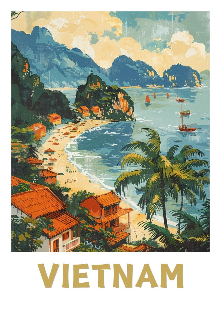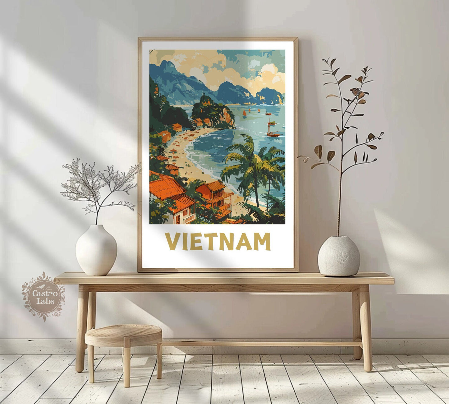 Notre affiche de voyage Vietnam Art Artwork vous transporte au cœur du Vietnam grâce à son design époustouflant. Idéale pour les amoureux de voyages et d'art, elle met en valeur les paysages emblématiques du pays, des rizières aux villes animées, dans une splendeur éclatante. Que vous ayez exploré le Vietnam ou rêvé de son charme, cette affiche de voyage Vietnam sera un ajout captivant à votre décoration.