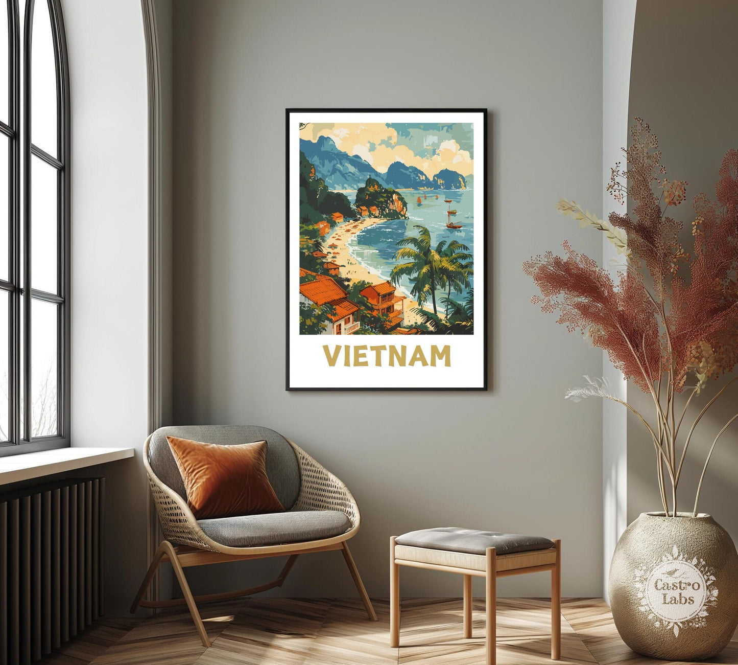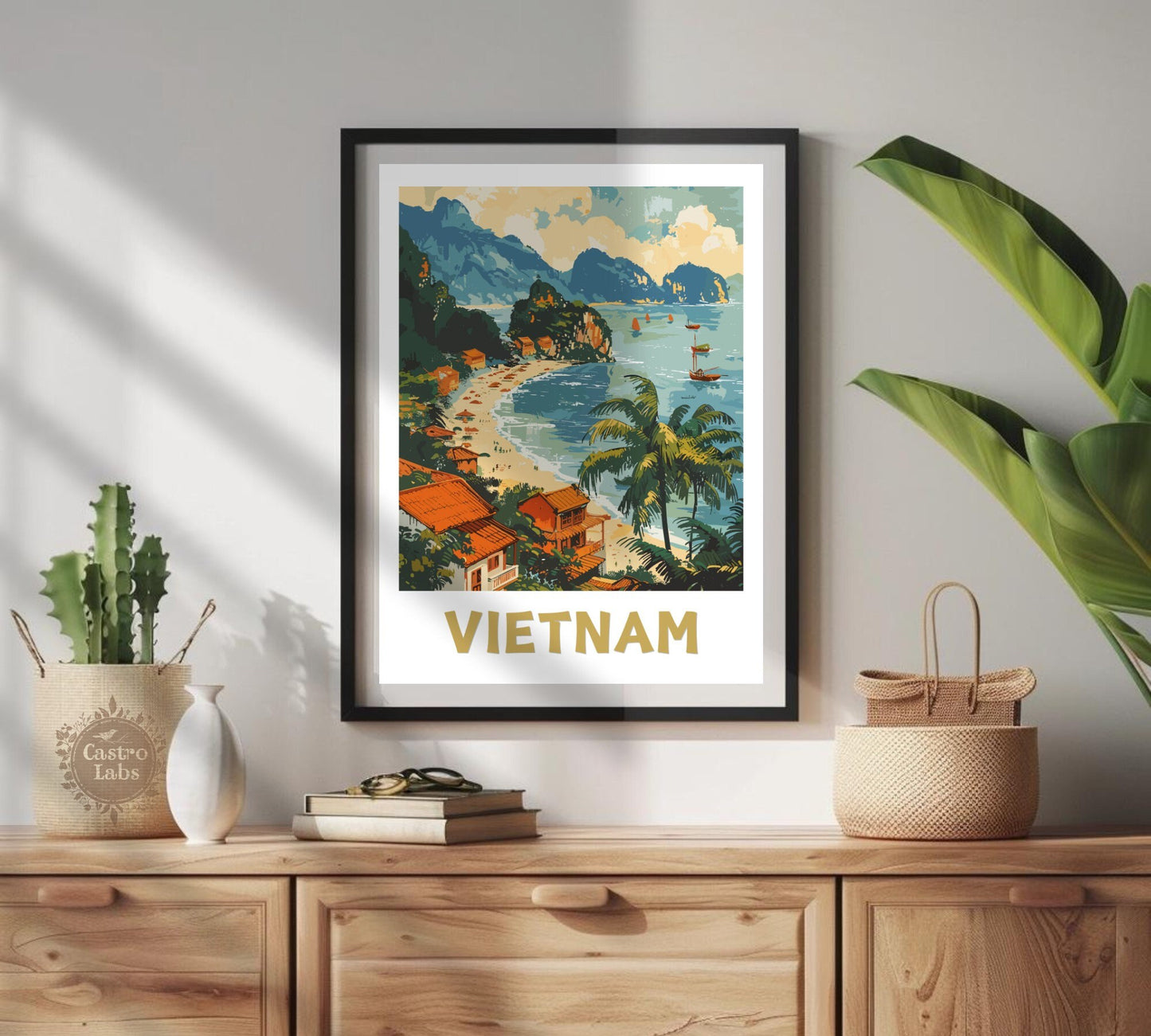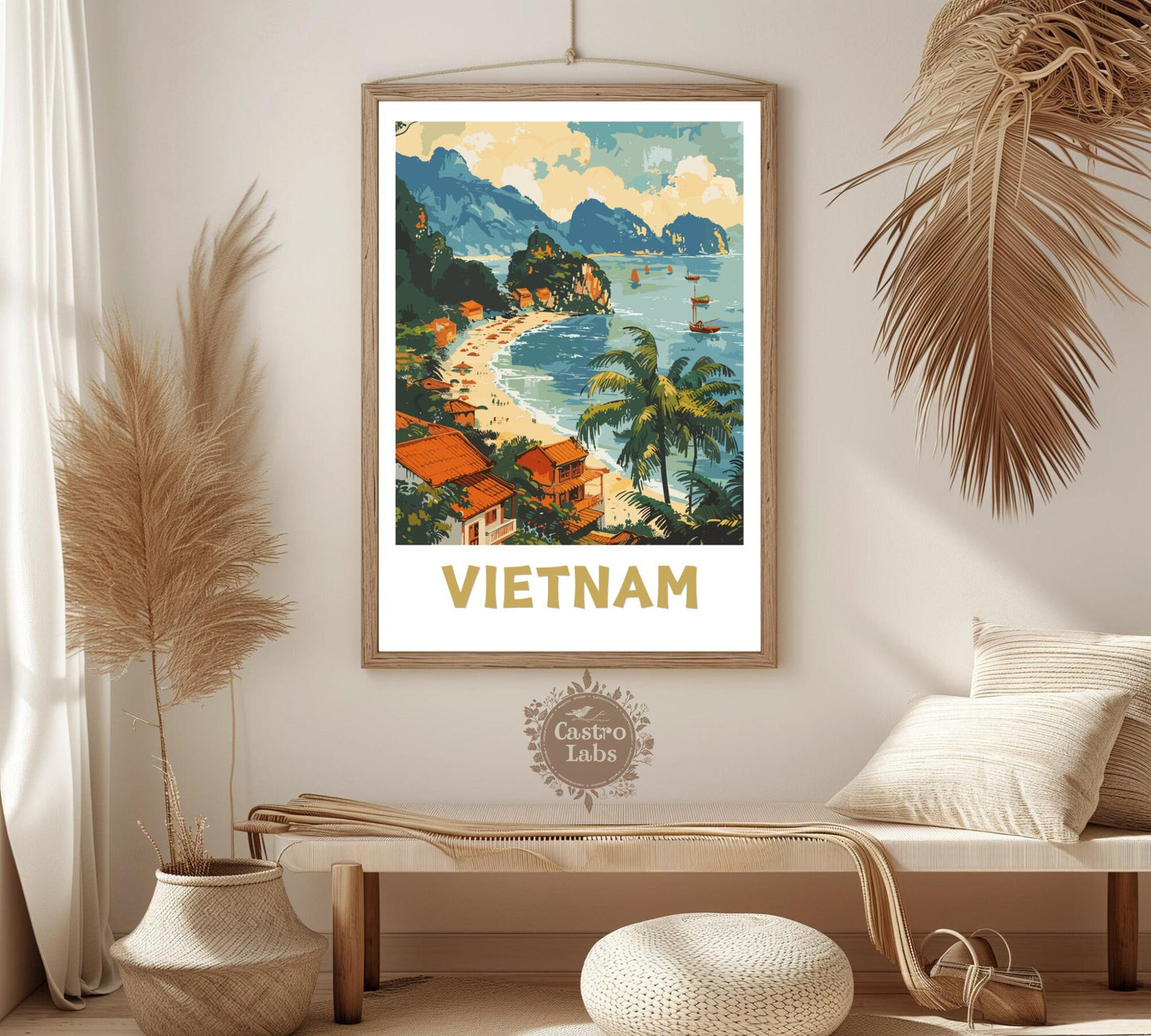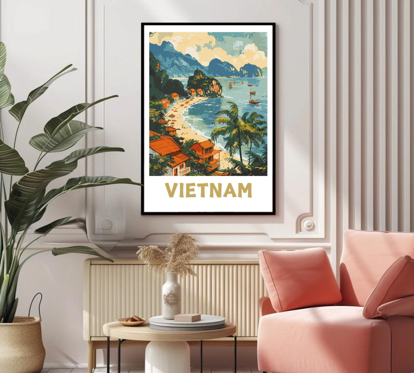 Transformez votre intérieur en un véritable concentré d'énergie vietnamienne grâce à cette œuvre captivante. Idéale pour un salon, un bureau ou un espace inspiré du voyage, elle s'harmonise parfaitement avec d'autres œuvres d'art internationales. Plus qu'un simple objet de décoration, cette affiche de voyage est une invitation à découvrir la beauté intemporelle du Vietnam.
