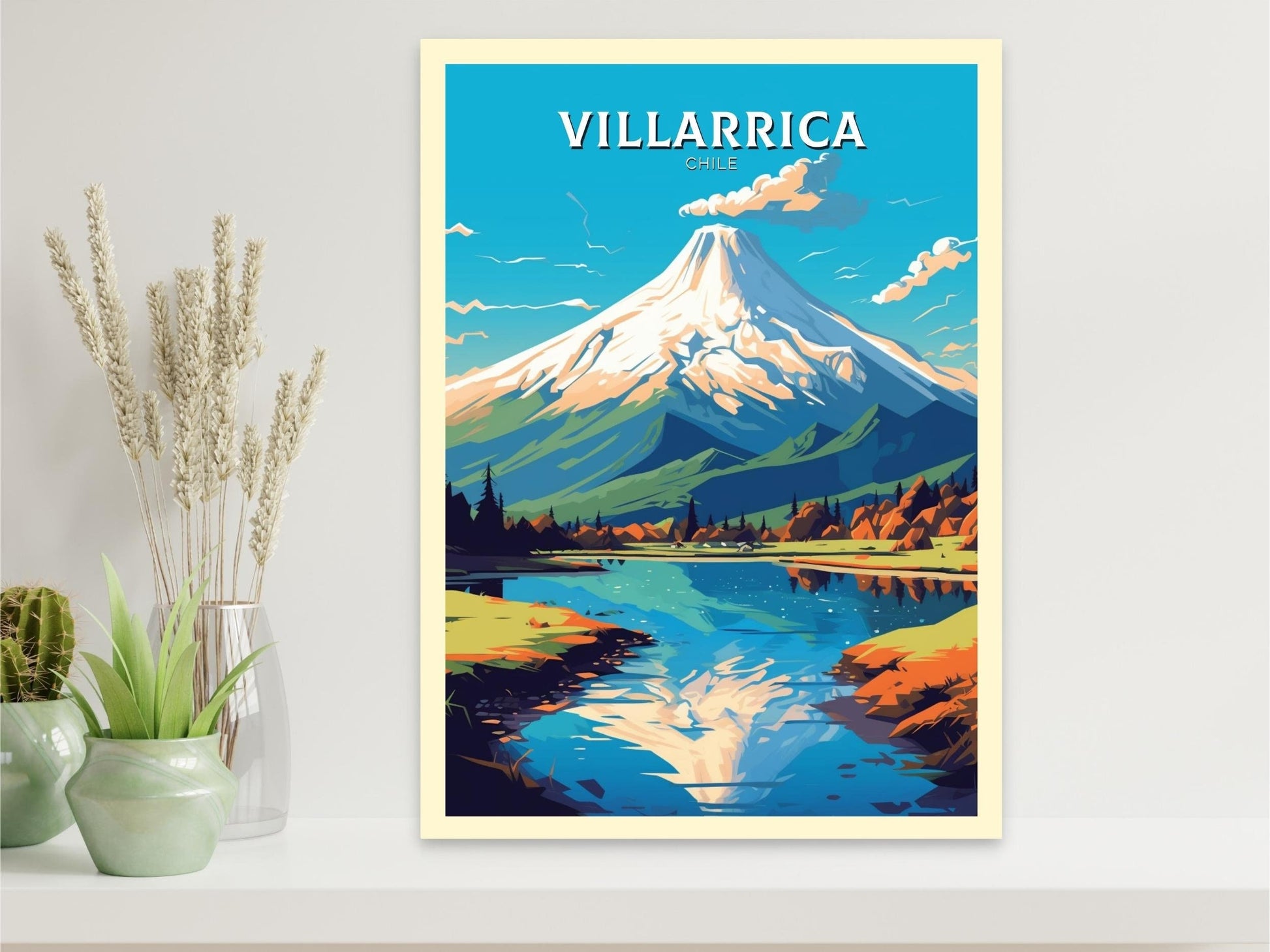Notre affiche de voyage Villarrica, imprimée sur du papier, plonge votre intérieur dans la beauté spectaculaire du volcan Villarrica, au Chili, grâce à son design vibrant. Idéale pour les passionnés de voyages et les amateurs d'art, elle capture le pic fumant et le lac Villarrica scintillant avec des détails saisissants. Que vous ayez parcouru ses pentes ou rêvé de ses panoramas, cette affiche Villarrica sera un ajout magnifique à votre décoration.