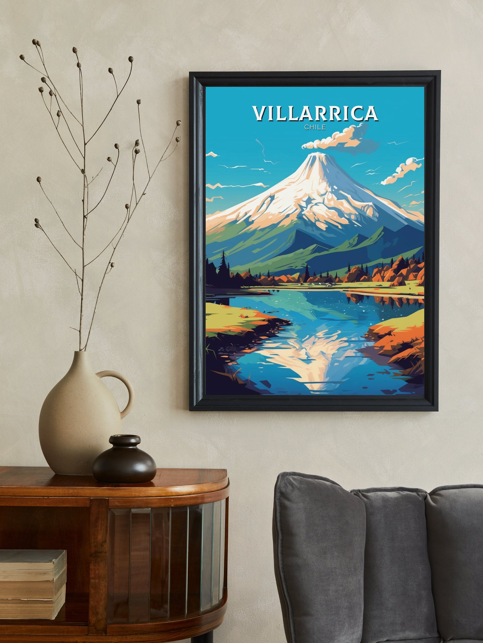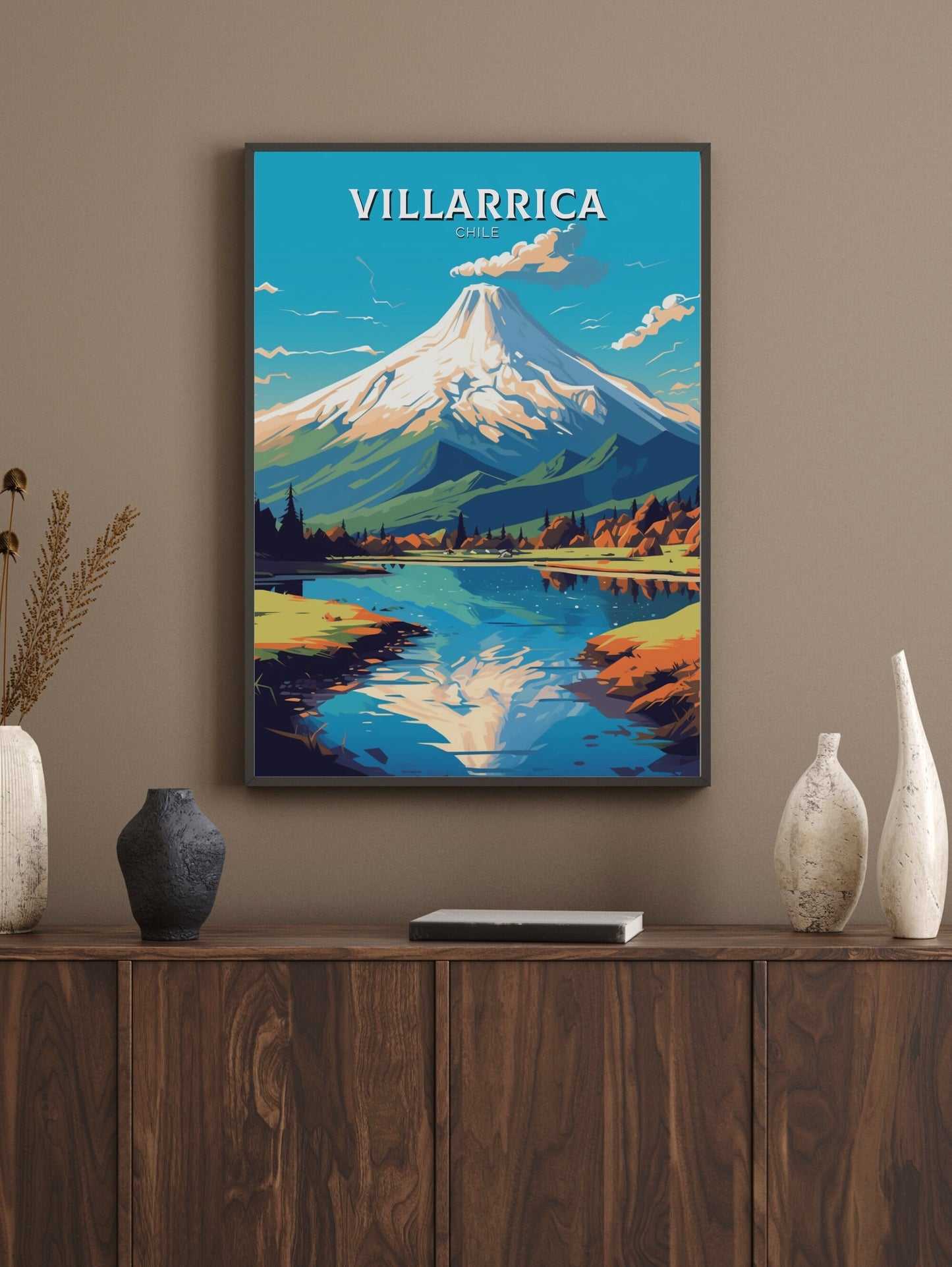 Cette œuvre mêle des rouges flamboyants et des bleus froids à l'essence sauvage de Villarrica, mettant en valeur sa splendeur naturelle avec un style saisissant. Imprimée sur un papier de qualité supérieure, elle offre un éclat durable et une finition lisse, ce qui en fait un cadeau idéal pour les aventuriers ou les collectionneurs d'art. Cette affiche de voyage apporte une touche d'élégance andine à tous vos murs.