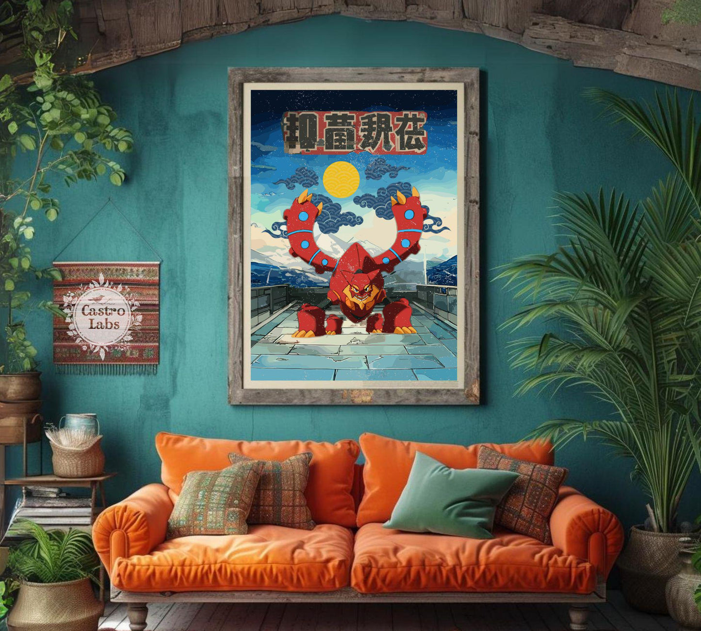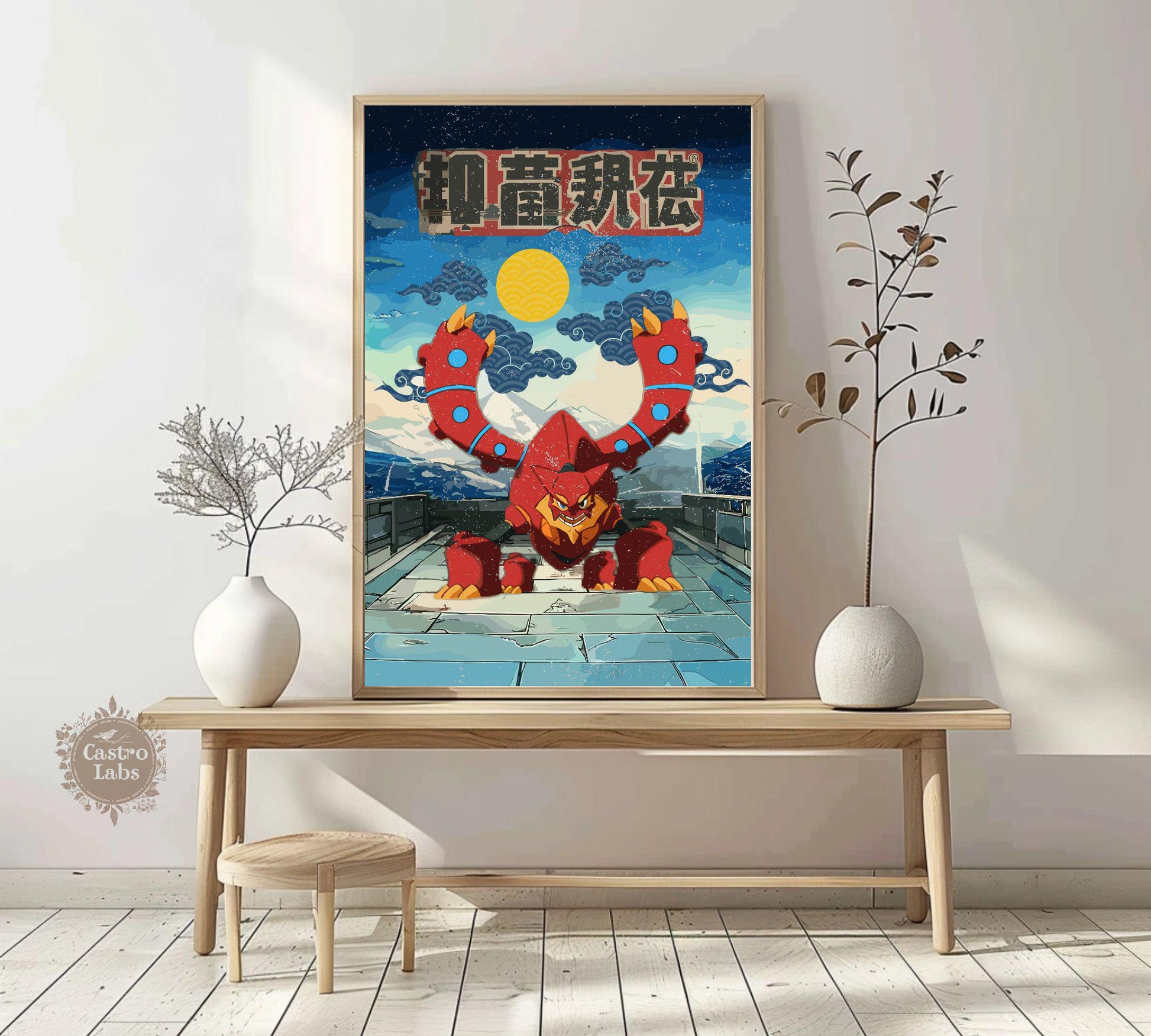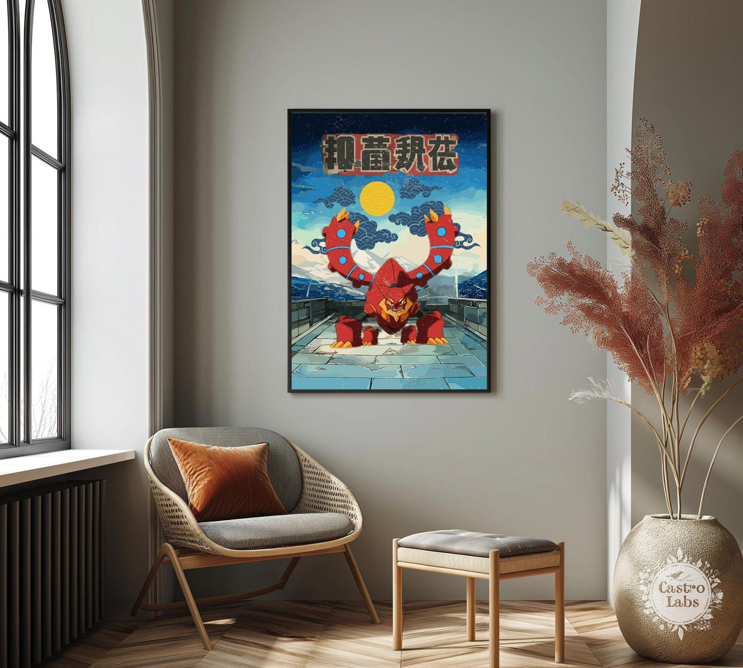 Affiche Pokémon Volcanion - Décoration de salle de jeux Pokémon Art