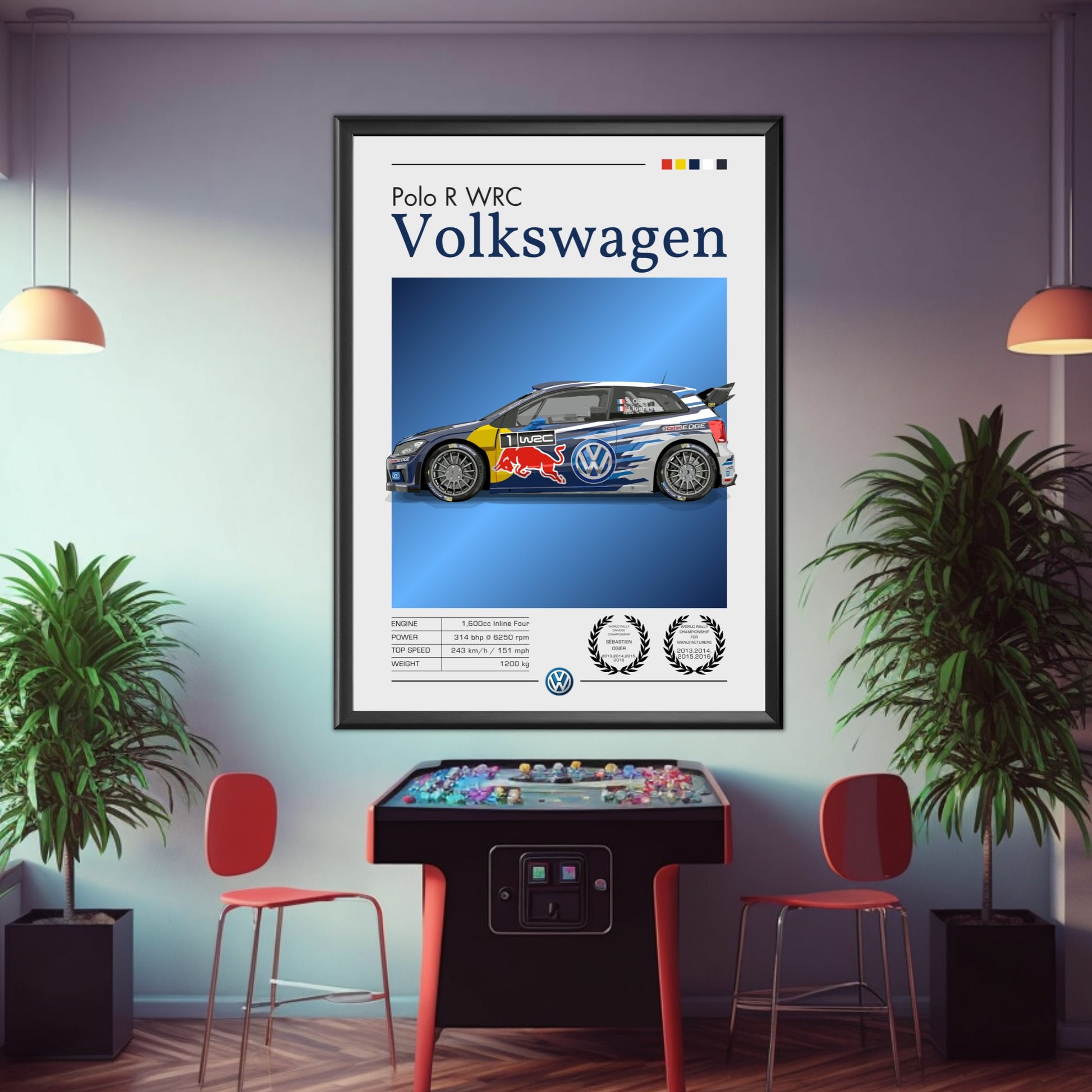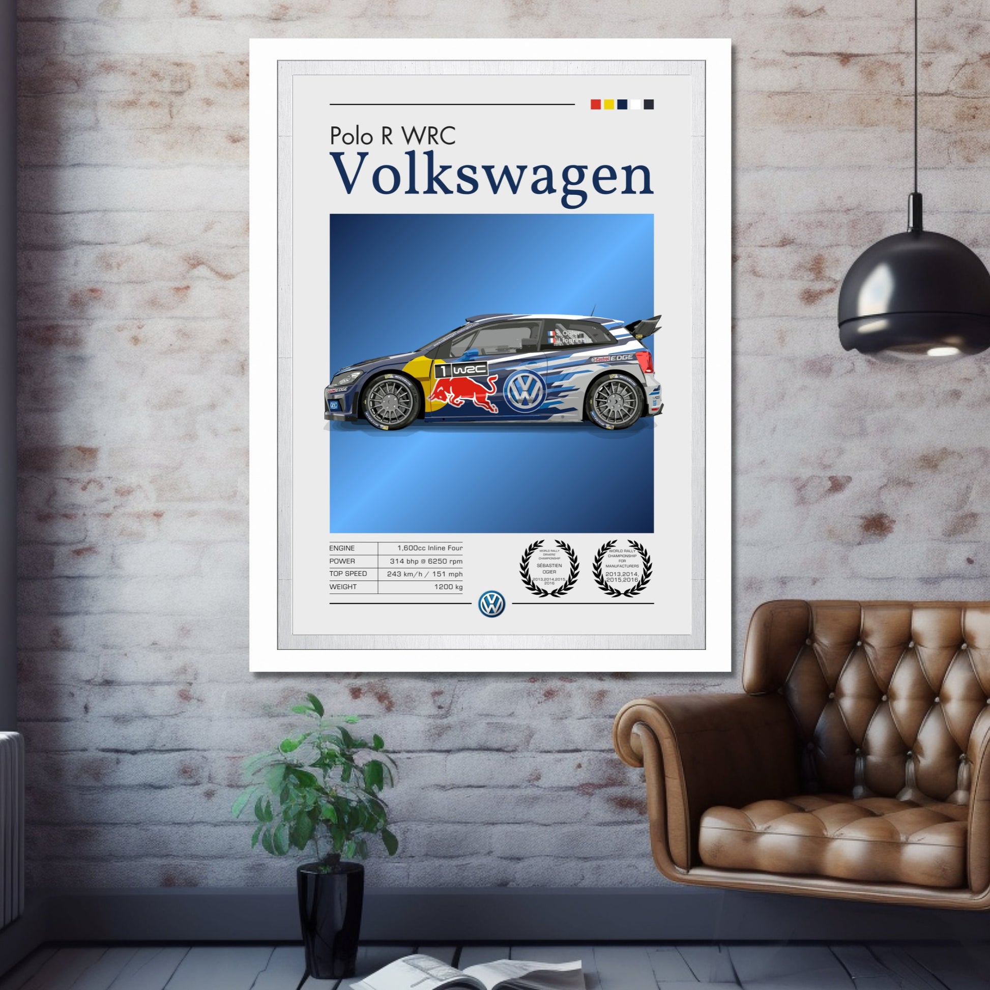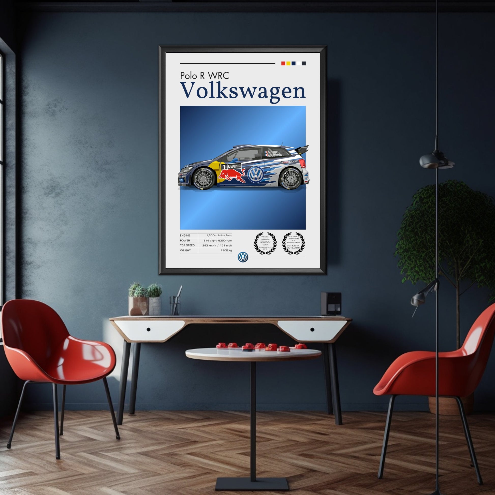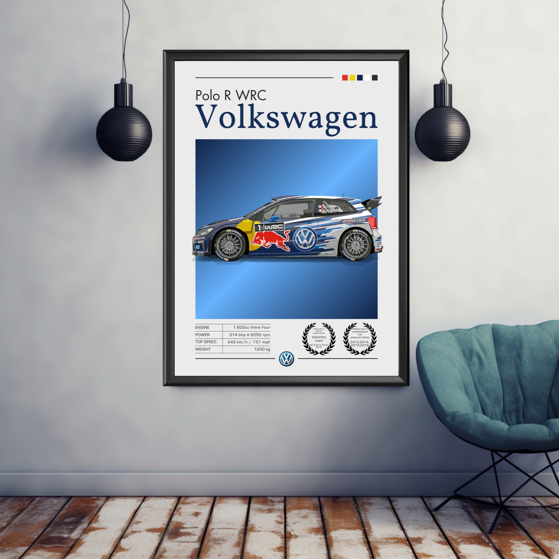 Célébrez la domination du rallye moderne avec cette affiche Volkswagen Polo R WRC , mettant en vedette l'une des voitures les plus titrées du Championnat du monde des rallyes de son époque. Idéale pour les passionnés de sport automobile, les collectionneurs et les fans de rallye, cette œuvre murale met en scène la légendaire Volkswagen Polo R WRC , réputée pour son moteur turbocompressé, ses performances à quatre roues motrices et ses multiples victoires en championnat WRC. Inspirez-vous des sensations fortes, de la vitesse et de l'excellence technique de cette championne de rallye moderne chez vous, dans votre garage, votre bureau ou votre caverne d'Ali Baba grâce à cette affiche automobile saisissante.