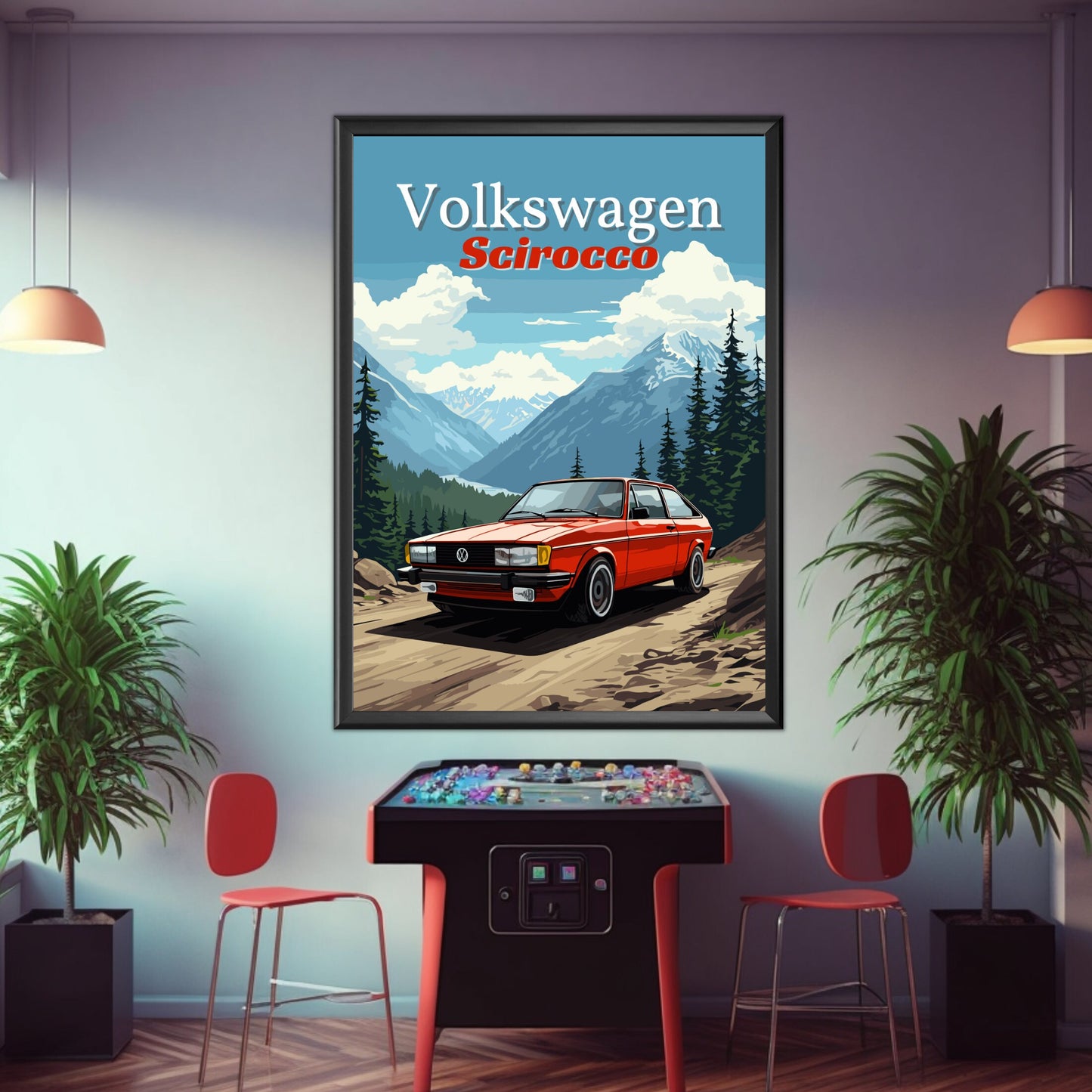 Affiche Volkswagen Scirocco – Décoration murale de voiture de sport allemande classique des années 1980