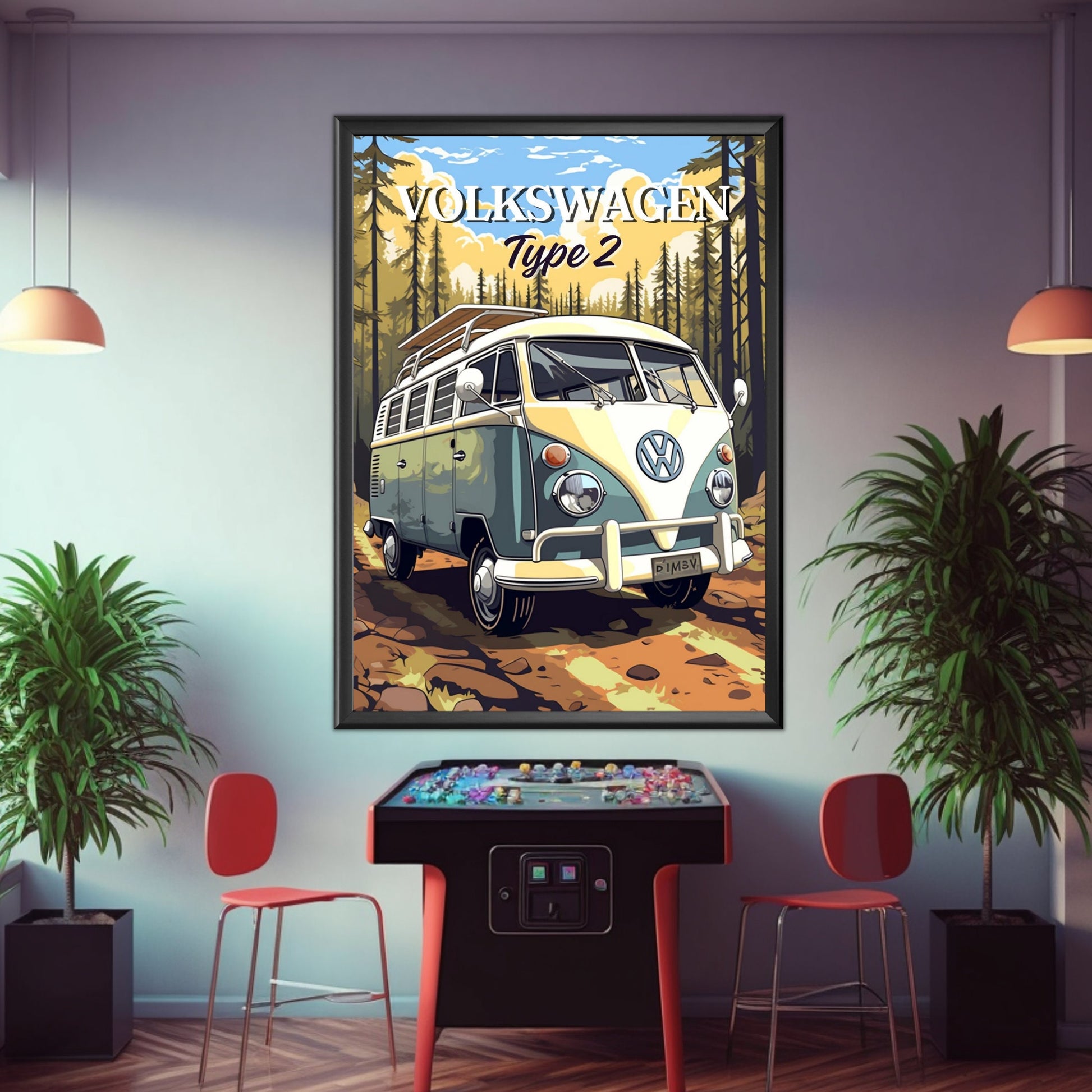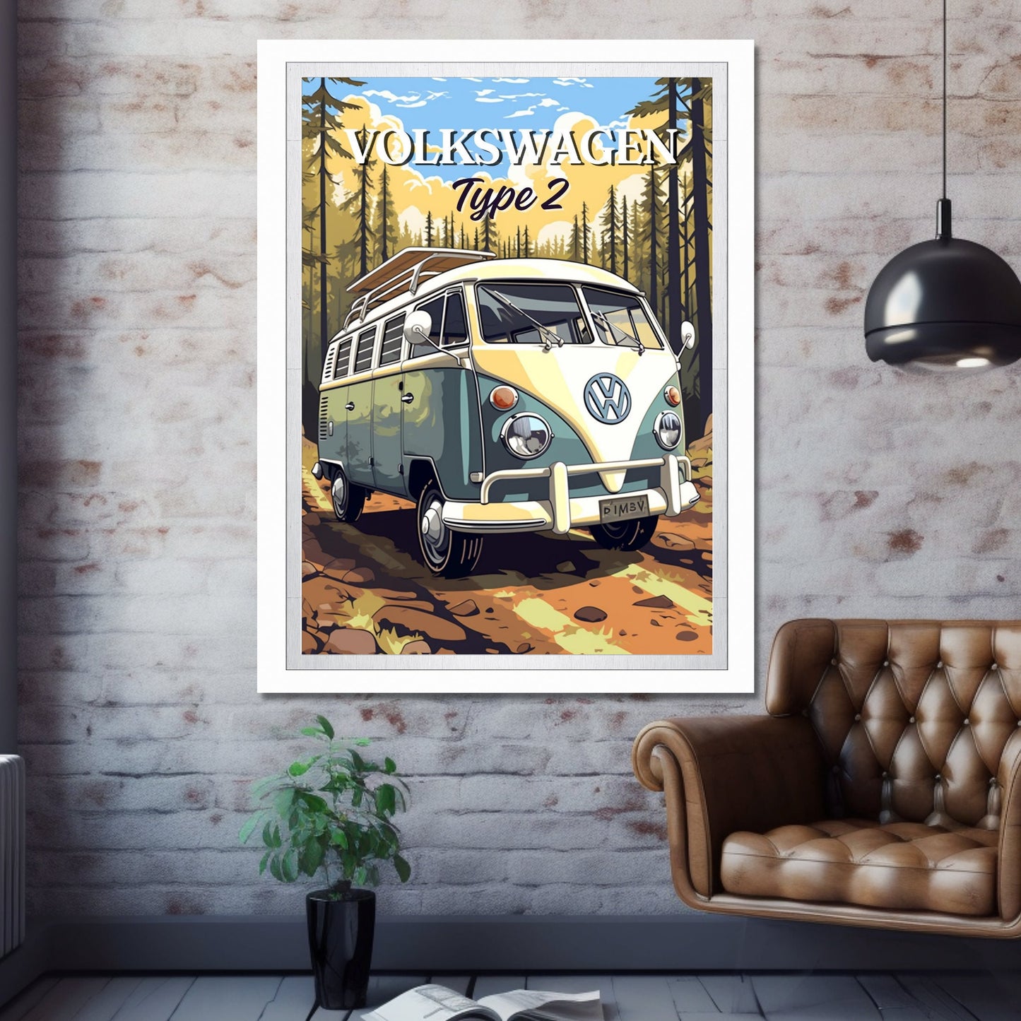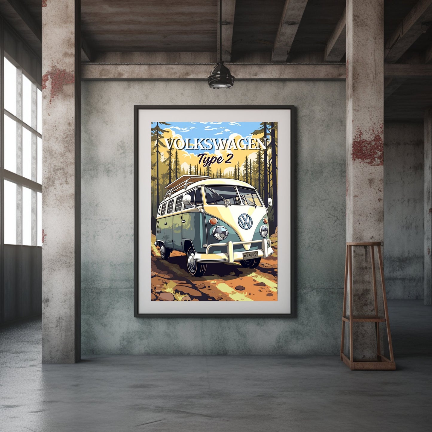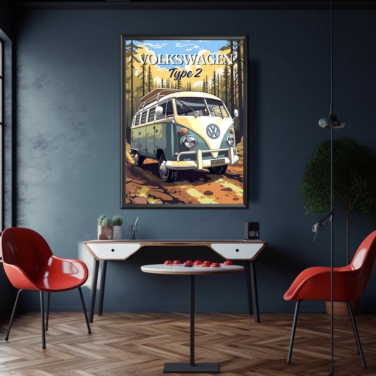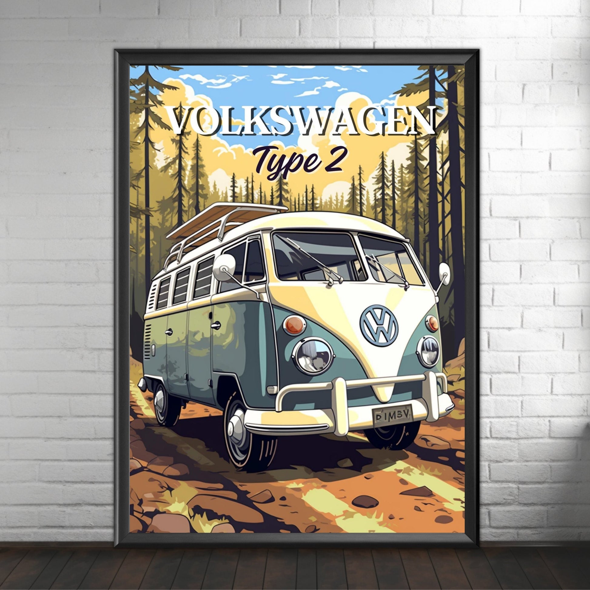 Affiche Volkswagen Type 2 – Décoration murale classique allemande des années 1960