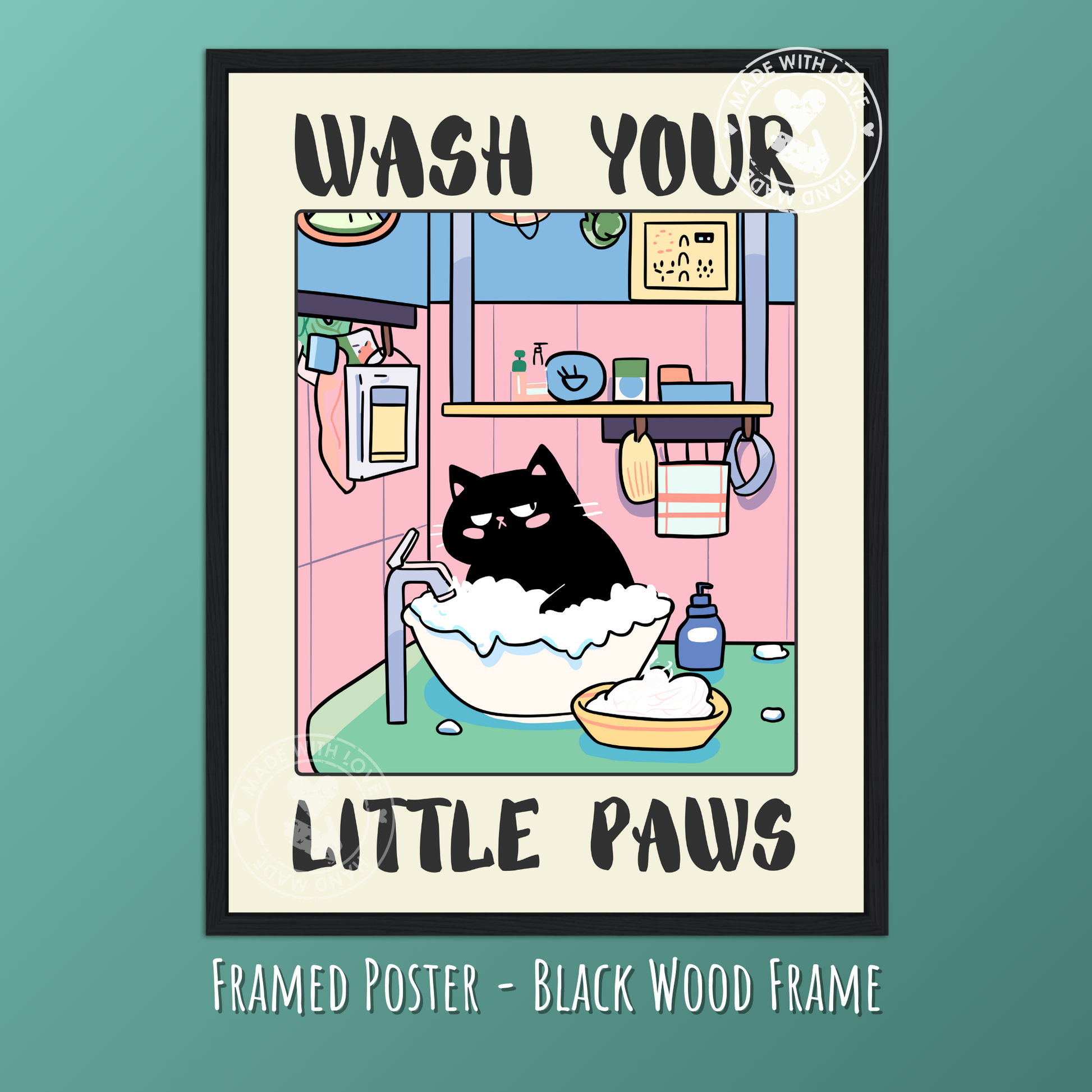 Sublimez votre salle de bain avec cette affiche de chat noir « Lavez-vous les pattes » , un charmant mélange d' art félin et de doux rappel de lavage des mains. Ornée d'un charmant félin au style kawaii, cette amusante décoration de salle de bain est parfaite pour les espaces enfants, les amoureux des animaux ou toute personne en quête d'une décoration murale originale et ludique.