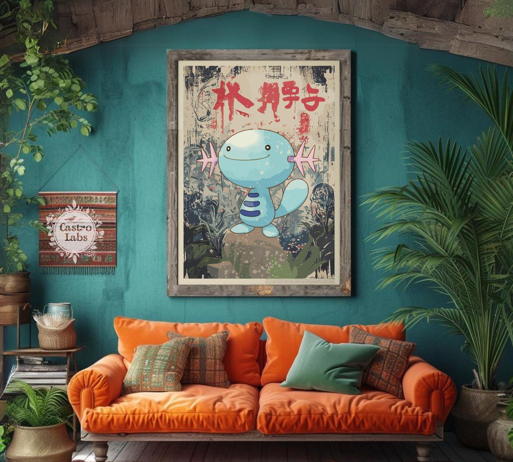 Affiche Pokémon Wooper - Décoration de salle de jeux Pokémon Art