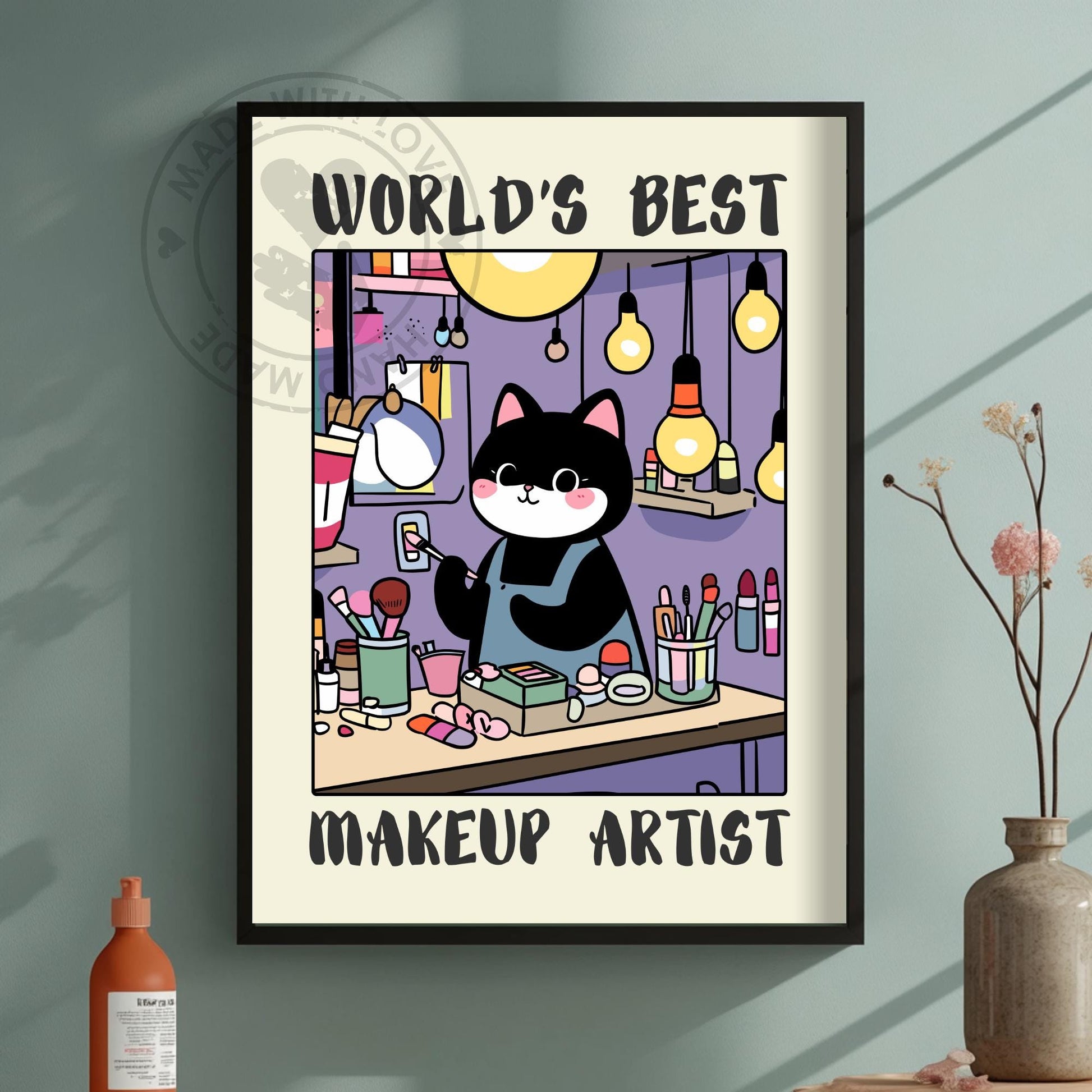 Affichez votre appréciation pour la créativité et le talent avec notre affiche des meilleurs maquilleurs du monde ! Idée cadeau originale et humoristique pour les maquilleurs , cette affiche apportera charme et humour aux salons de beauté, aux salles de maquillage à domicile ou aux cabinets professionnels. Idéale pour les anniversaires, les fêtes ou les occasions spéciales, elle célèbre le talent, le dévouement et le talent artistique des meilleurs maquilleurs.