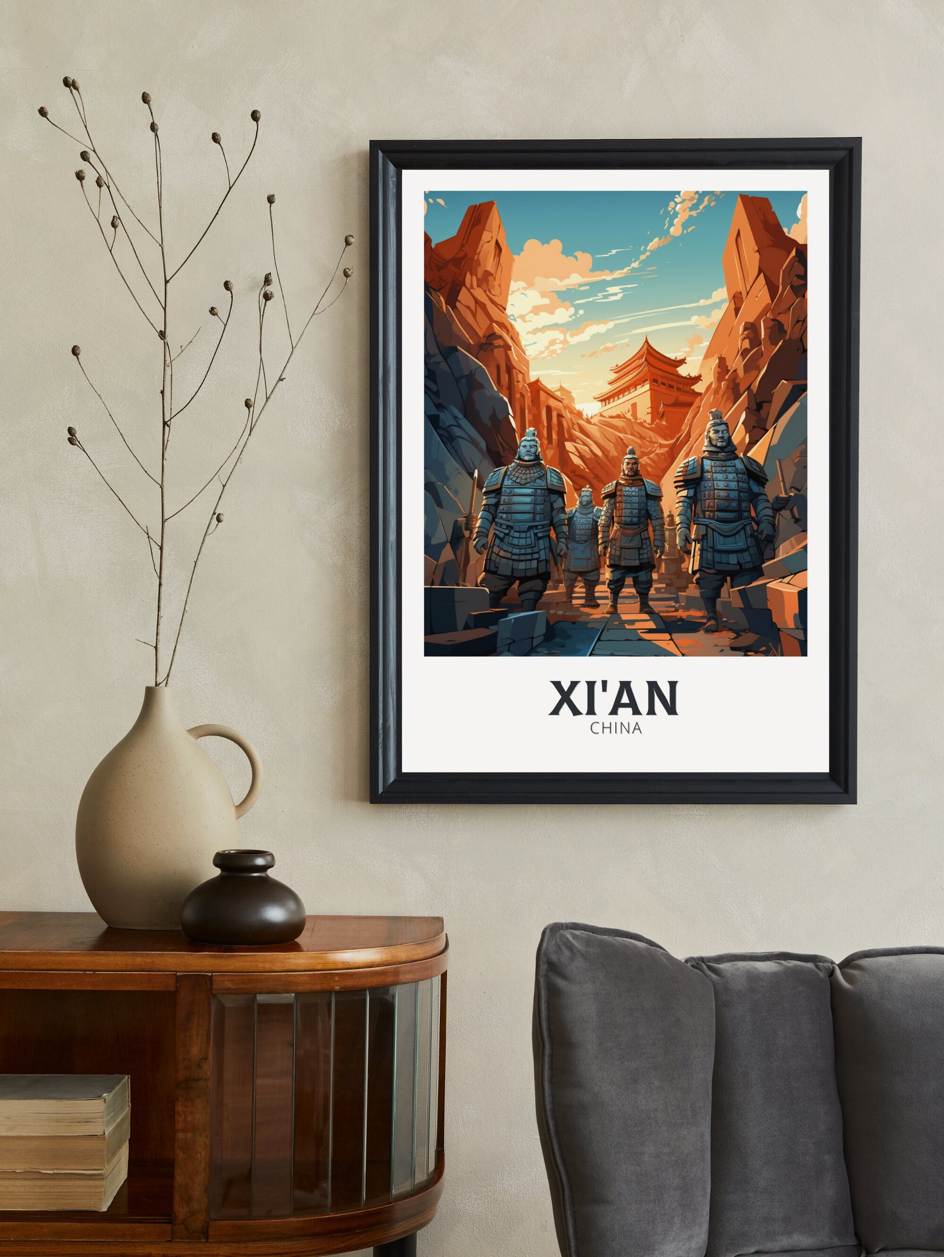 Notre affiche Xi'an - Chine imprimée vous transporte au cœur de la Chine antique grâce à son design saisissant. Idéale pour les passionnés de voyages et d'art, elle illustre avec force détails les guerriers en terre cuite emblématiques de Xi'an et ses remparts historiques. Que vous ayez exploré son passé ou rêvé de son héritage, cette affiche Xi'an Chine sera un ajout remarquable à votre décoration.