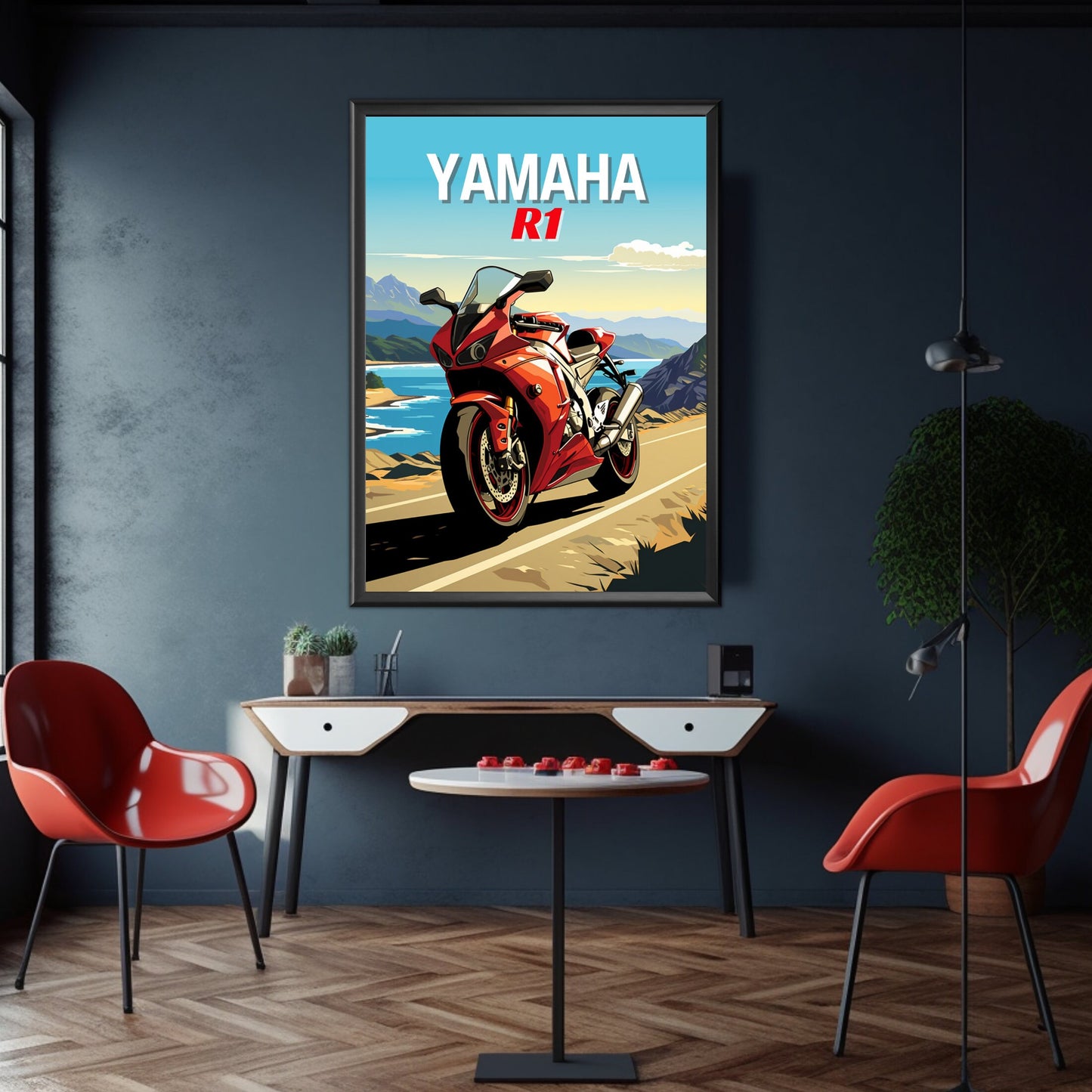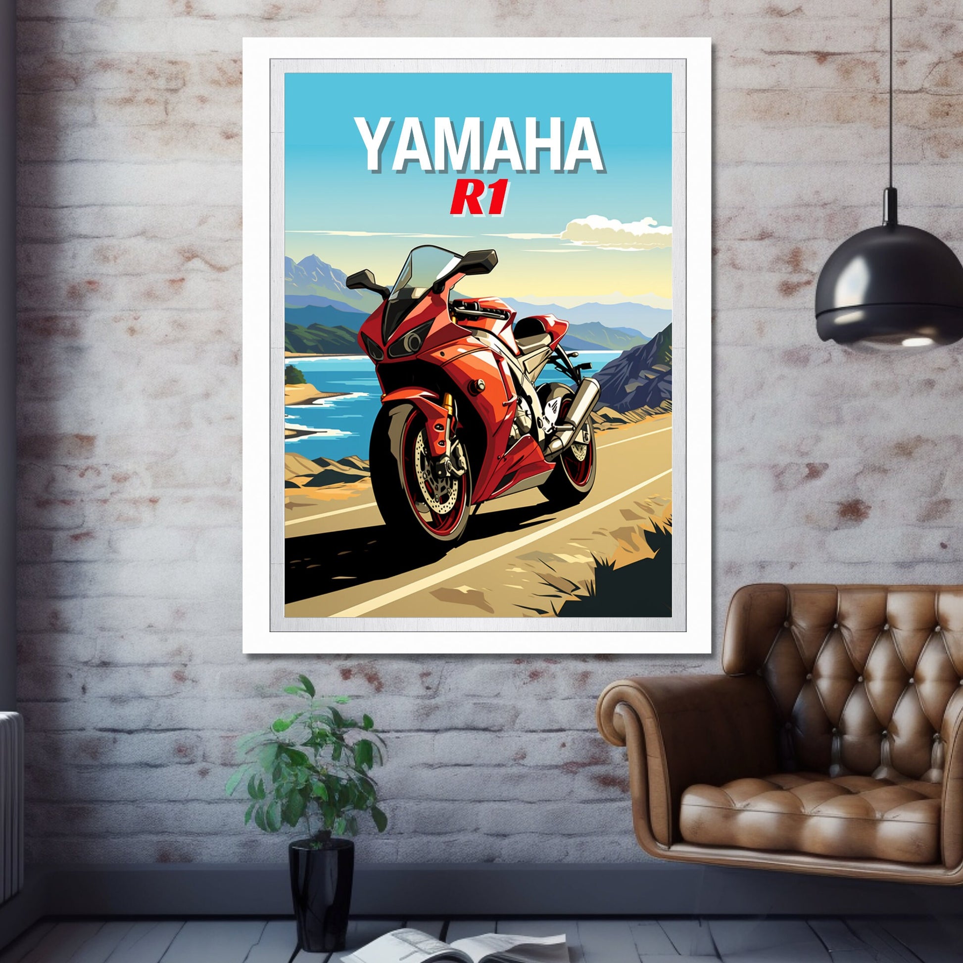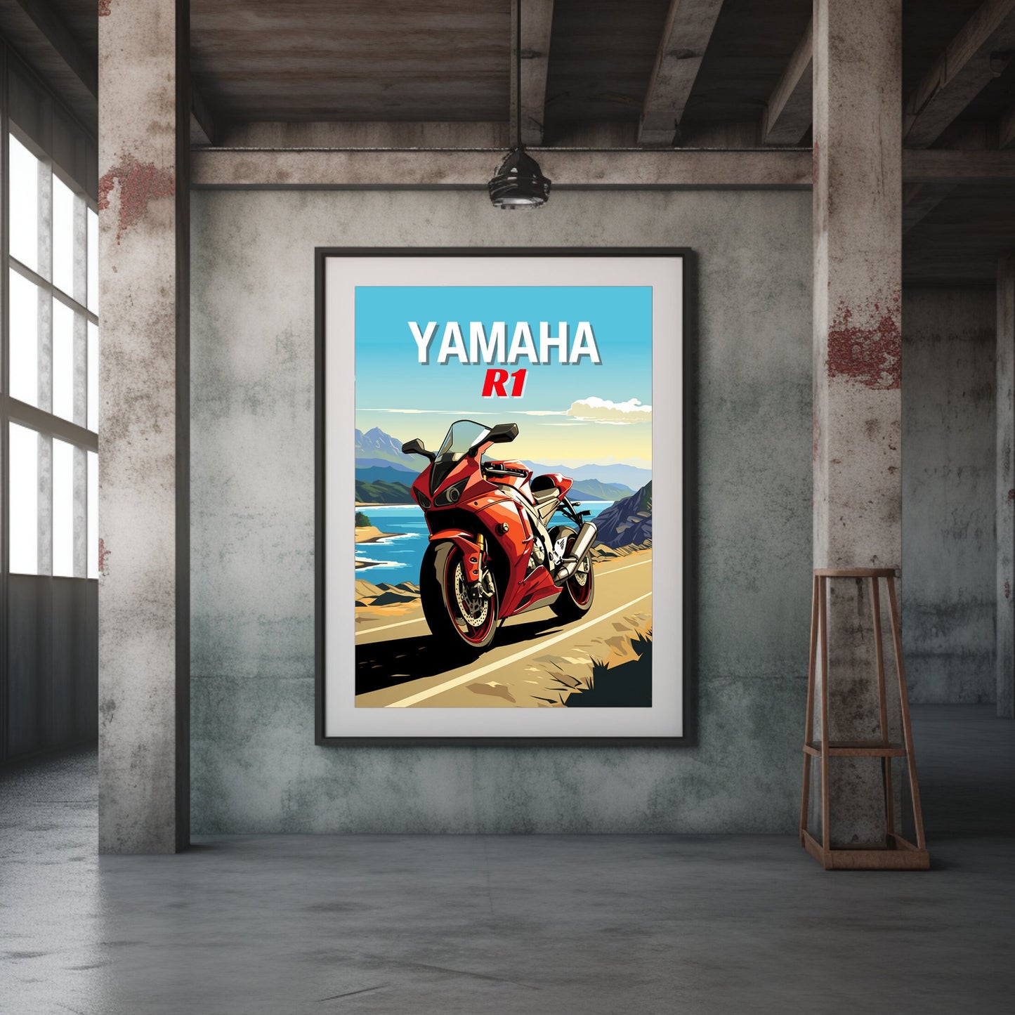 Mettez en valeur la légendaire Yamaha R1 avec ce poster R1 haut de gamme, célébrant l'une des superbikes les plus puissantes et emblématiques au monde. Connue pour son moteur quatre cylindres en ligne à haut régime, son design aérodynamique et ses performances inspirées de la piste, la R1 est une favorite des passionnés de Yamaha , des collectionneurs de superbikes et des passionnés de motos hautes performances . Idéale pour décorer un mur de garage , décorer un bureau ou offrir en cadeau aux passionnés de moto , cette affiche apporte le frisson, la vitesse et la précision de l'ingénierie Yamaha dans n'importe quel espace.