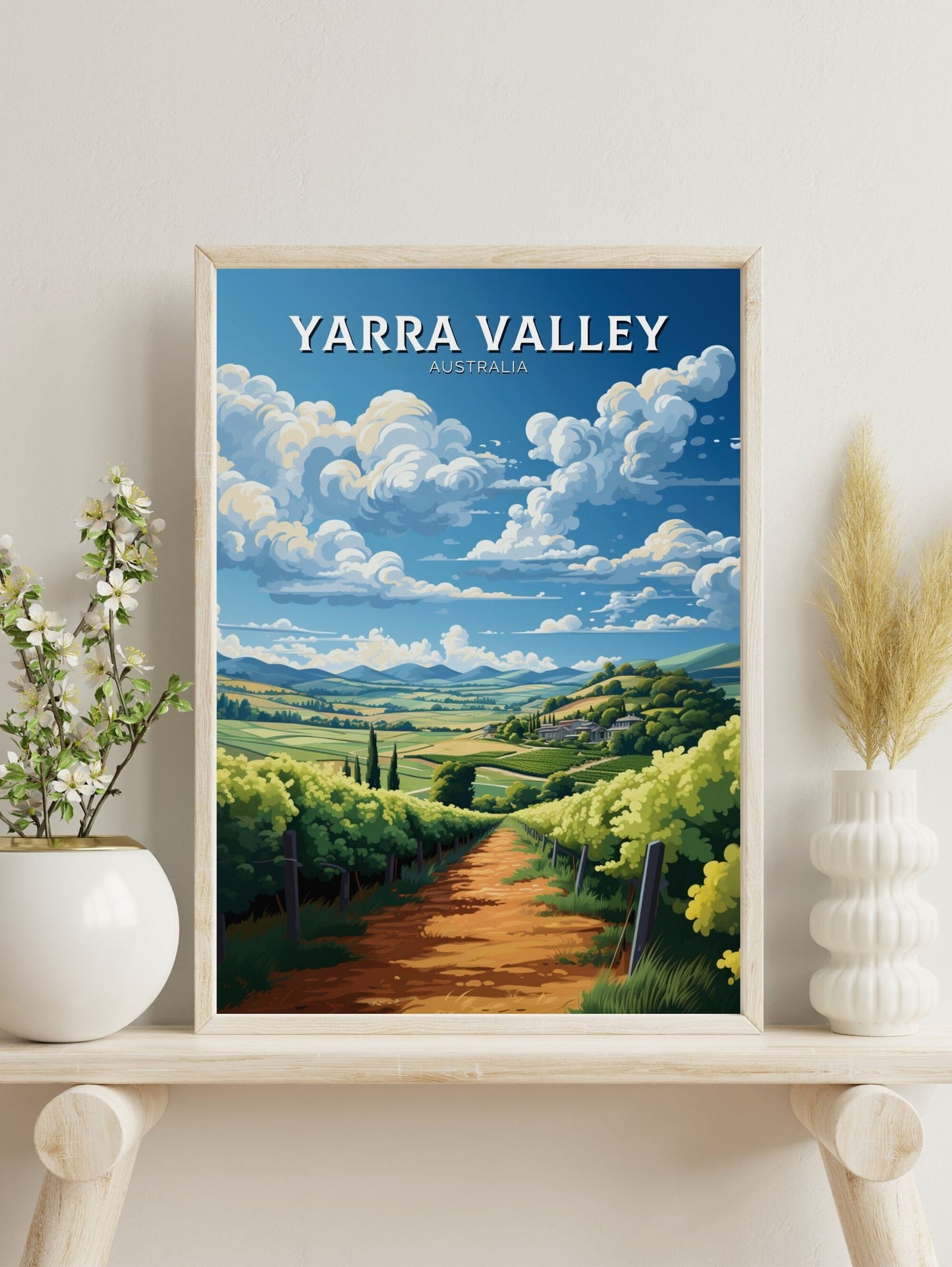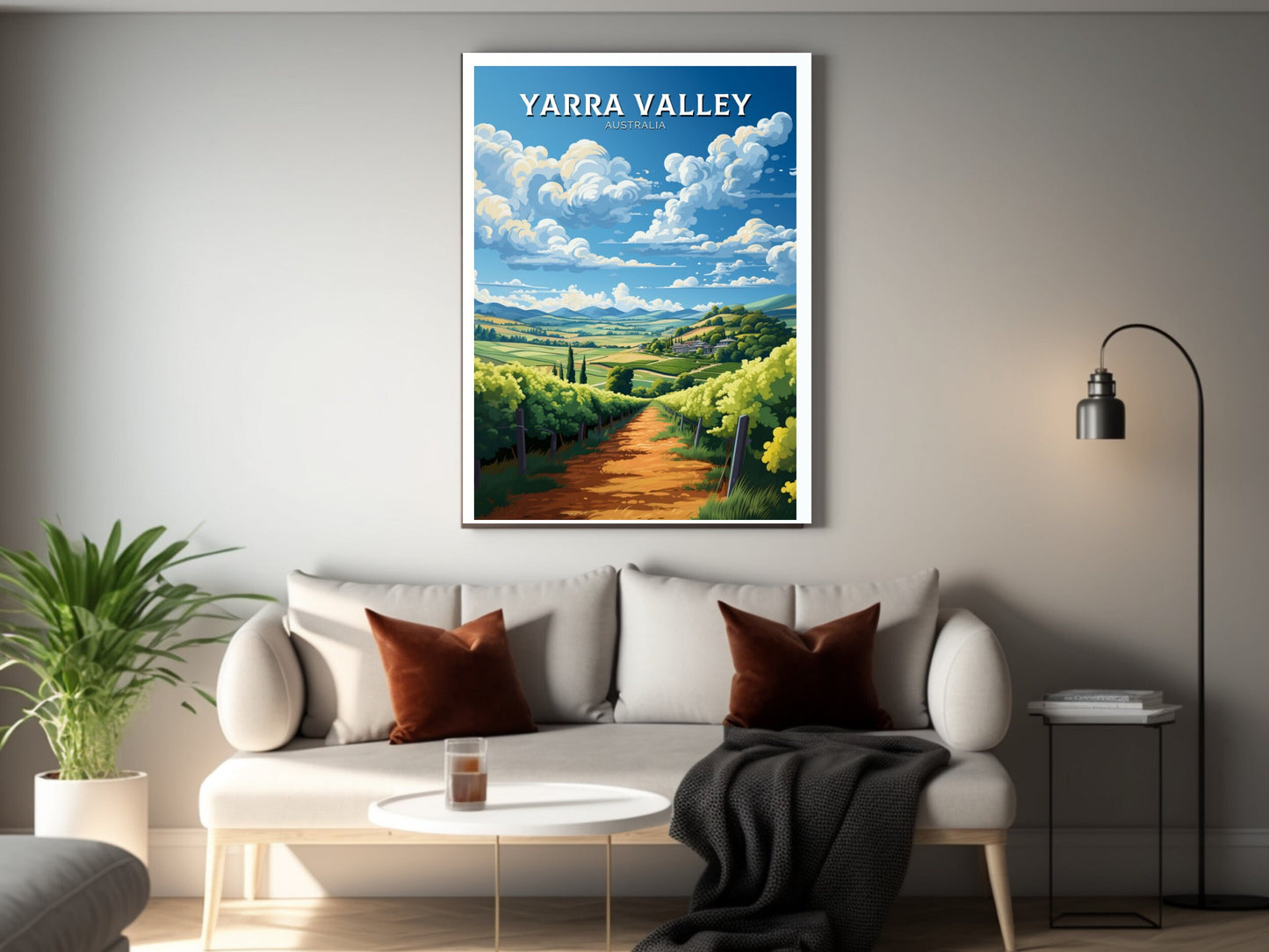 Apportez le charme paisible de la vallée de Yarra à vos murs avec cette impression de voyage intemporelle.