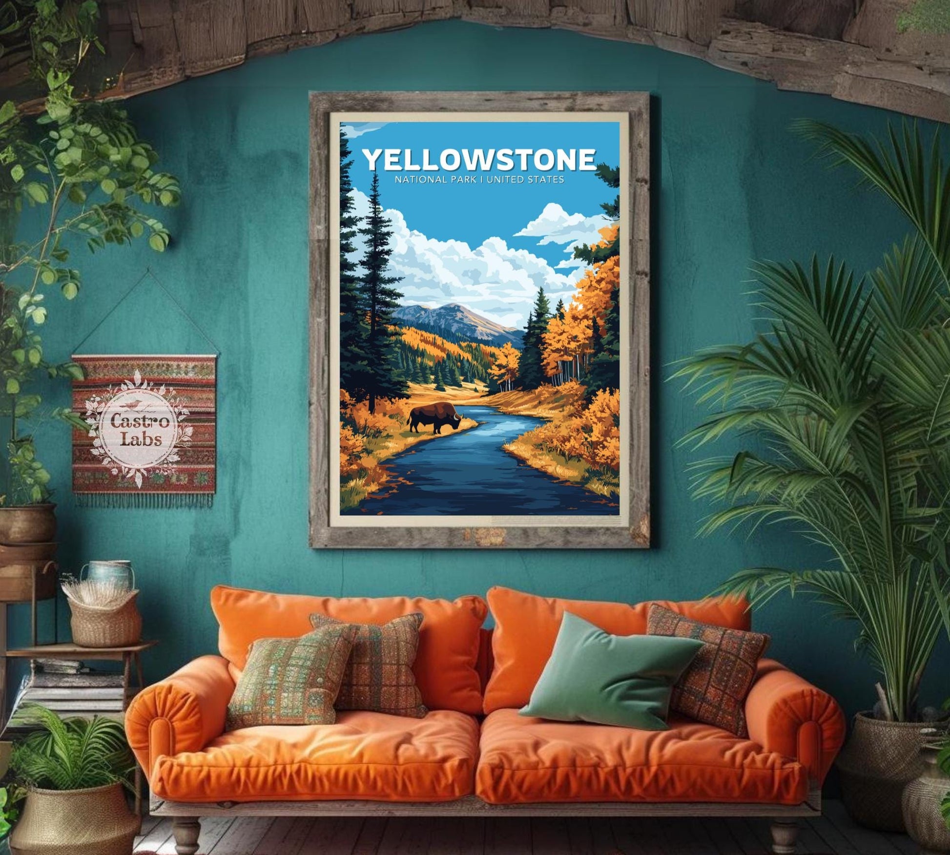 Transformez votre intérieur en un écrin de la majesté brute de Yellowstone grâce à cette œuvre captivante. Idéale pour les salons, les chalets ou les recoins rustiques, elle s'harmonise parfaitement avec les autres œuvres d'art des parcs nationaux. Plus qu'un simple objet de décoration, cette affiche des parcs nationaux est un hommage aux paysages emblématiques de l'Amérique.