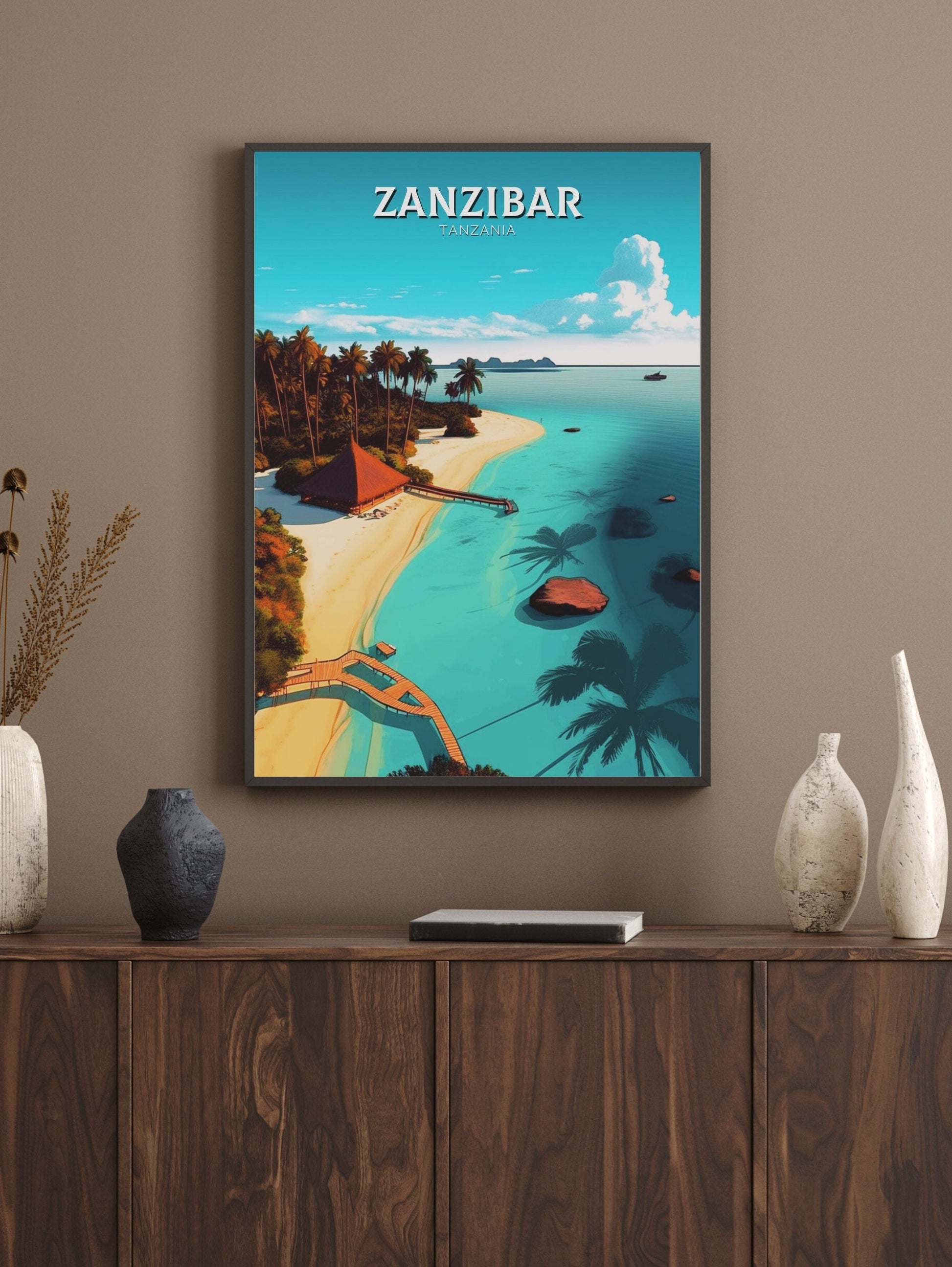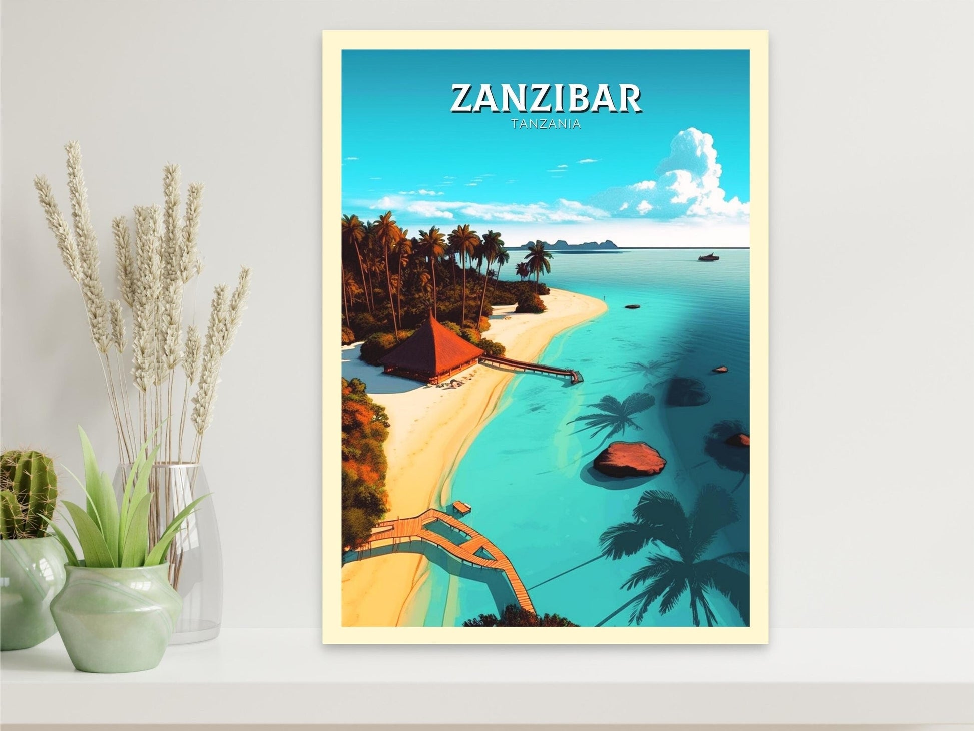 Notre affiche vintage de Zanzibar plonge votre intérieur dans le charme tropical de Zanzibar grâce à son design nostalgique. Idéale pour les passionnés de voyages et d'art rétro, elle capture les plages de sable blanc et les marchés aux épices de l'île dans un style intemporel. Que vous ayez flâné sur ses côtes ou rêvé de son charme, cette affiche vintage de Zanzibar sera un ajout magnifique à votre décoration.