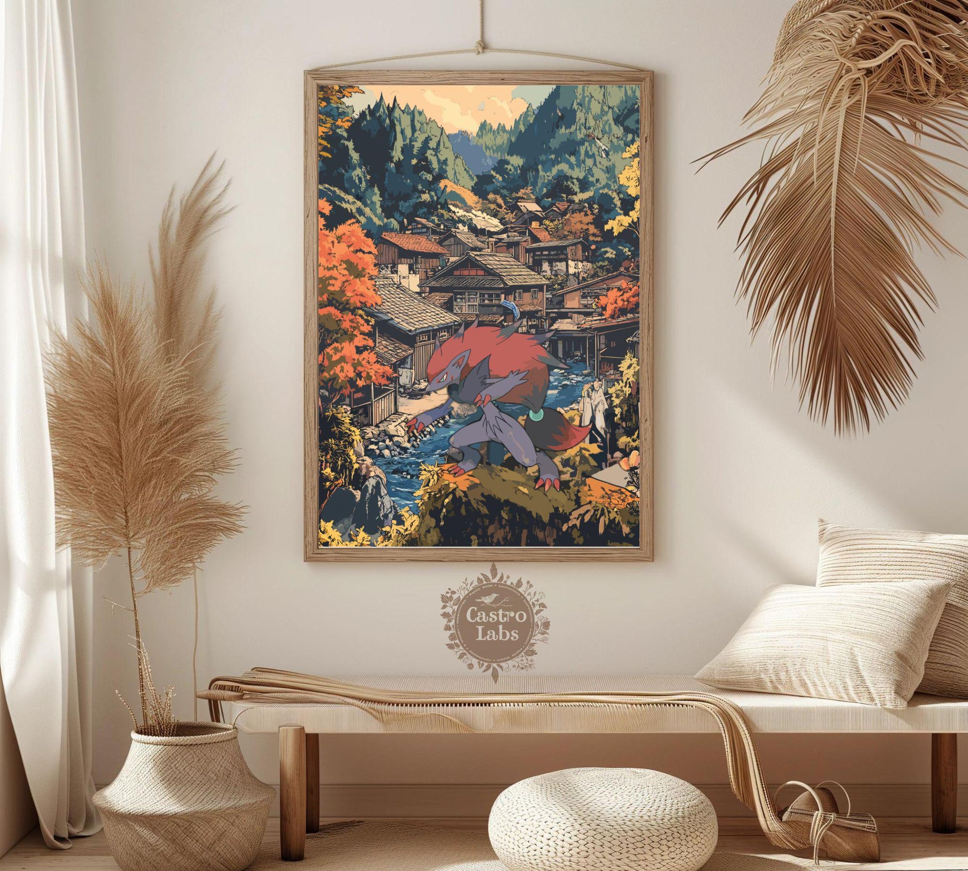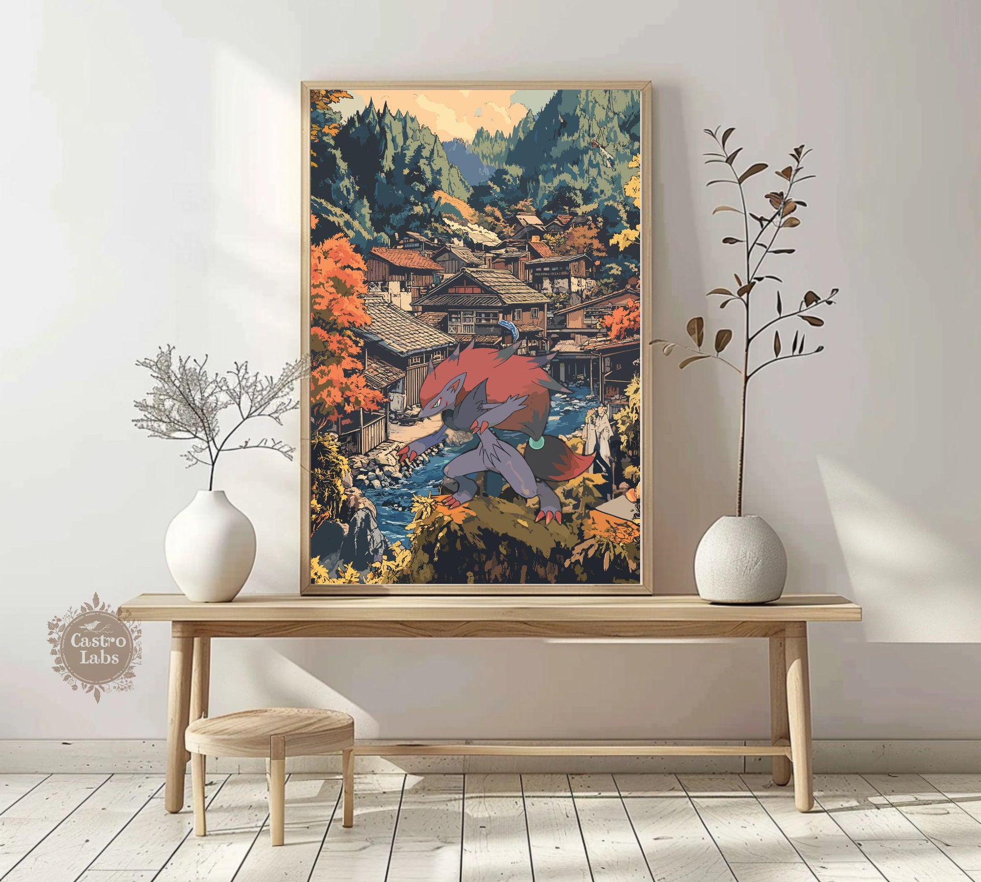 Affiche Pokémon Zoroark - Illustration de style japonais pour le JCC Pokémon