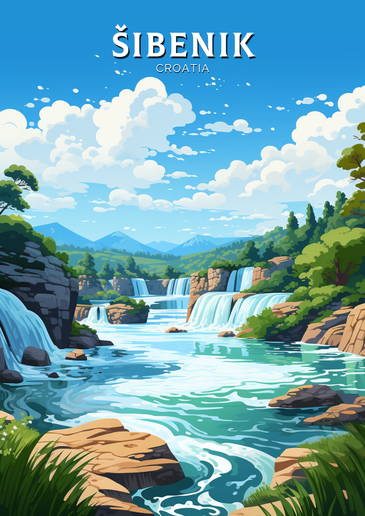 Celebrate the stunning beauty of Croatia’s historic coastal city with this vibrant Sibenik Travel Poster. Featuring Sibenik’s charming old town, medieval architecture, and sparkling Adriatic Sea, this Croatia artwork brings the rich heritage and breathtaking scenery of the Dalmatian coast right into your home. Perfect for travel enthusiasts and lovers of Croatian culture, this poster adds a fresh and timeless Mediterranean touch to any room.